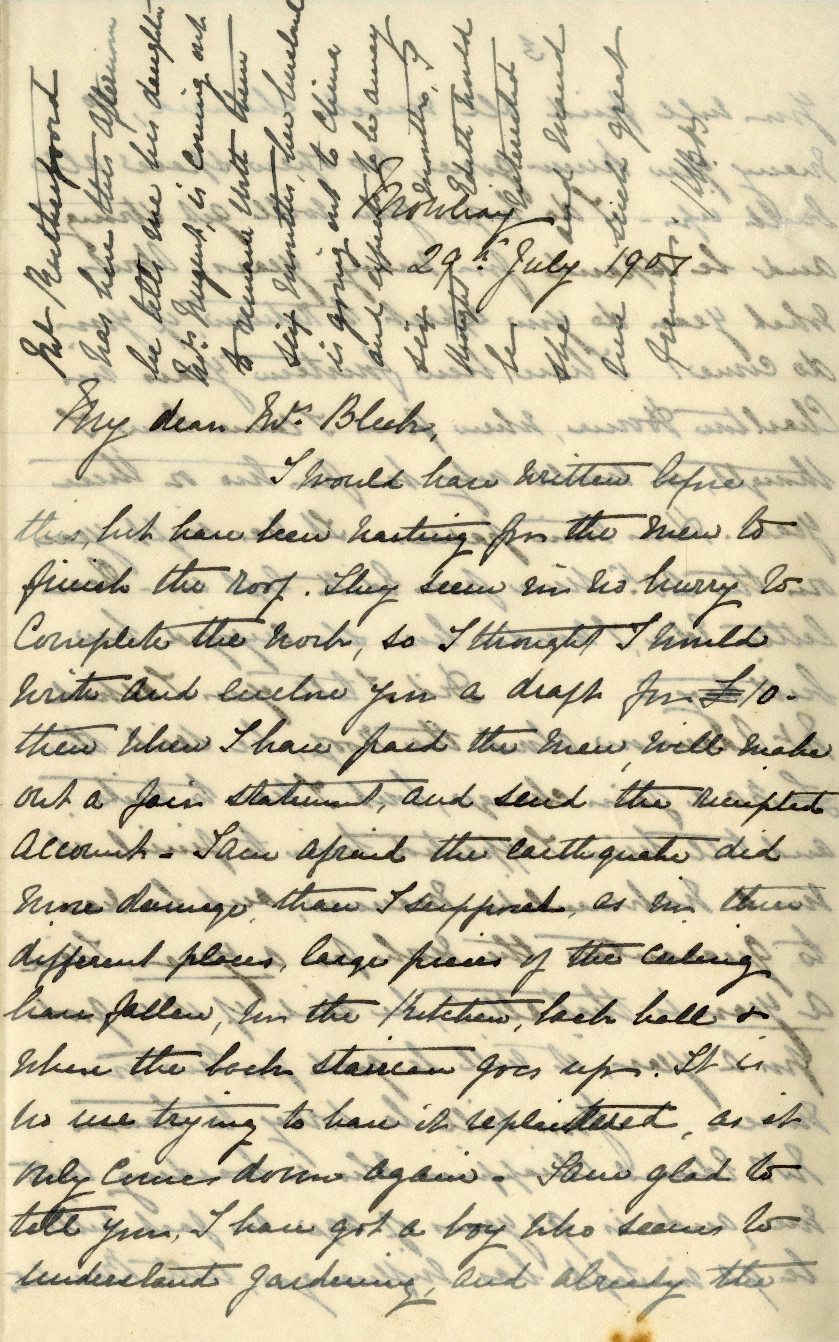 1. The Brights rented Charlton House from Jemima while she and her family lived in Germany. The Brights moved in on 6 June 1887 and Jemima returned in 1904. 2. The letter description is taken from the Bleek-Lloyd Scott Family Archive Catalog 2007. [See Resources on this website]