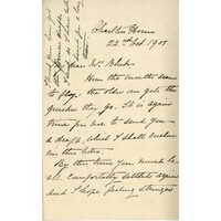 1. The Brights rented Charlton House from Jemima while she and her family lived in Germany. The Brights moved in on 6 June 1887 and Jemima returned in 1904. 2. The letter description is taken from the Bleek-Lloyd Scott Family Archive Catalog 2007. [See Resources on this website]
