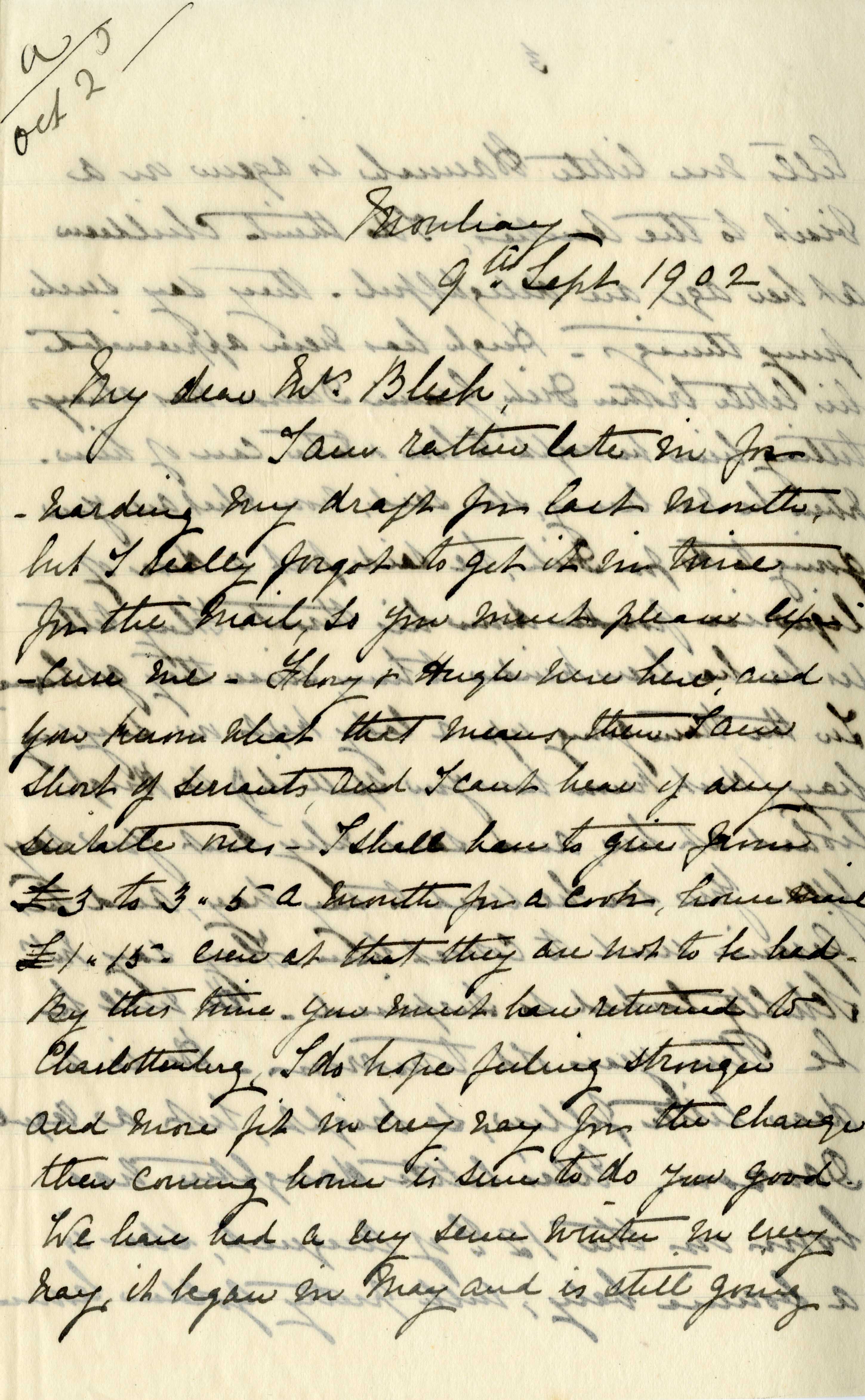 Letter from Katharine Bright to Jemima Bleek, from Mowbray in Cape Town, 9 September 1902.