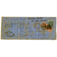 An envelope addressed to Jemima Bleek, having contained Lucy Lloyd's "journal" of her voyage aboard the Roman to England from Cape Town, 1-25 May 1874.