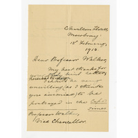 Lucy Lloyd's [draft?] response, dated 1 February 1913, to Vice Chancellor of the University of the Cape of Good Hope, Thomas Walker, who asked if she was willing to provide a photograph for the Cape Times report on Degree Day. Lucy writes that she is unwilling to "be portrayed in the Cape Times" (nor does she possess a recent photograph).