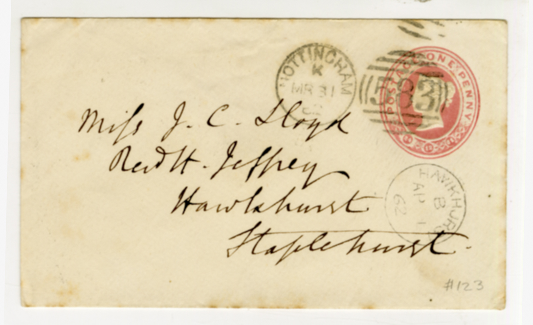 31 March 1862, envelope, Henry Jeffreys, Jemima Lloyd, Nottingham postmark, Revd H. Jeffrey [sic], Miss J.C. Lloyd
