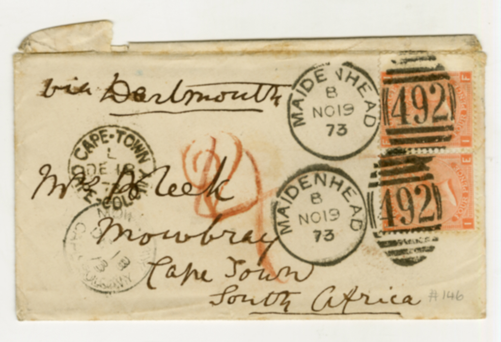 19 November 1873, envelope, Jemima Bleek, Mrs Bleek, postmark Maidenhead