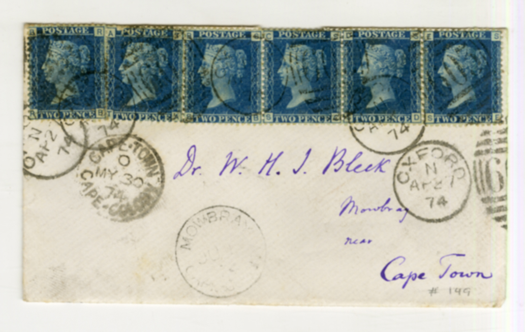 27 April 1874, Dr WHI Bleek, envelope, Mowbray, Oxford postmark, Wilhelm Bleek