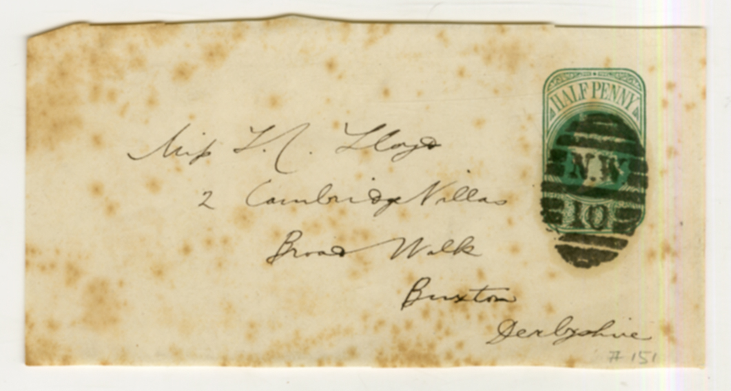 10 June 1874, Derbyshire, envelope, London postmark, Lucy Lloyd, Miss LC Lloyd