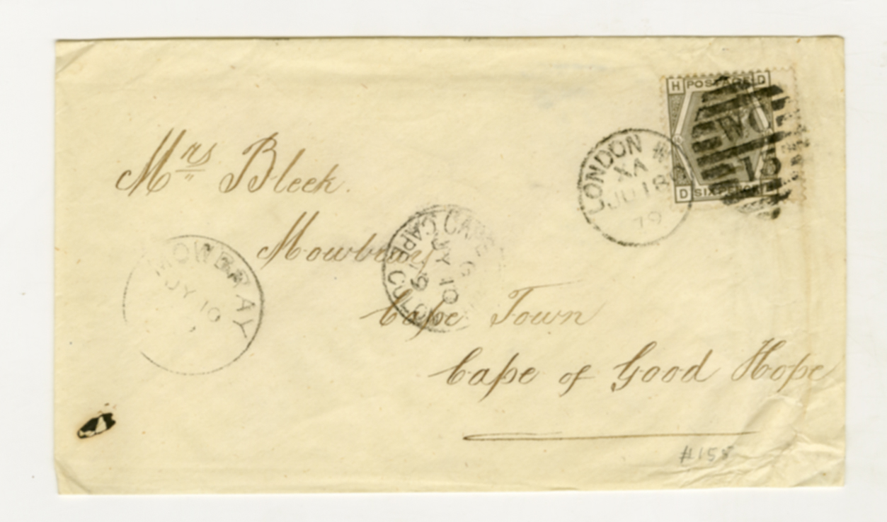 18 June 1879, envelope, Jemima Bleek, Mowbray, Mrs Bleek