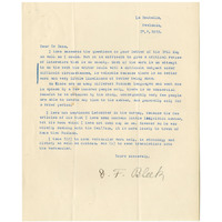 A typewritten letter from Dorothea Bleek to Professor Clement M Doke, dated 27 May 1932. It accompanies a document entitled "Answers to questions asked by the Inter-University Committee on African Studies. Bushmen," in which Dorothea answered Doke's/the Committee's questions. She points out the difficulty in reviewing a literature which is so "scanty" given the scarcity of Bushman speakers and number of different groups, leading to a lack of commercial incentive for any prolonged studies.