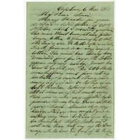A letter from Wilhelm Bleek to Lucy Lloyd, from Cape Town and dated 6 November 1863. Wilhelm reports on Jemima's improving strength and Bella's tooth and shoulder pain. He recounts a tiring walk he took with Nellie and Bella up "Lion's Rump" on a visit. He wishes Lucy for her birthday and comments on the good situation of her father's children and the benefit of his departing Natal. He quotes part of a letter from Miss Townsend for Lucy, concerning the Bishop of Natal and seeing Lucy's father in London.