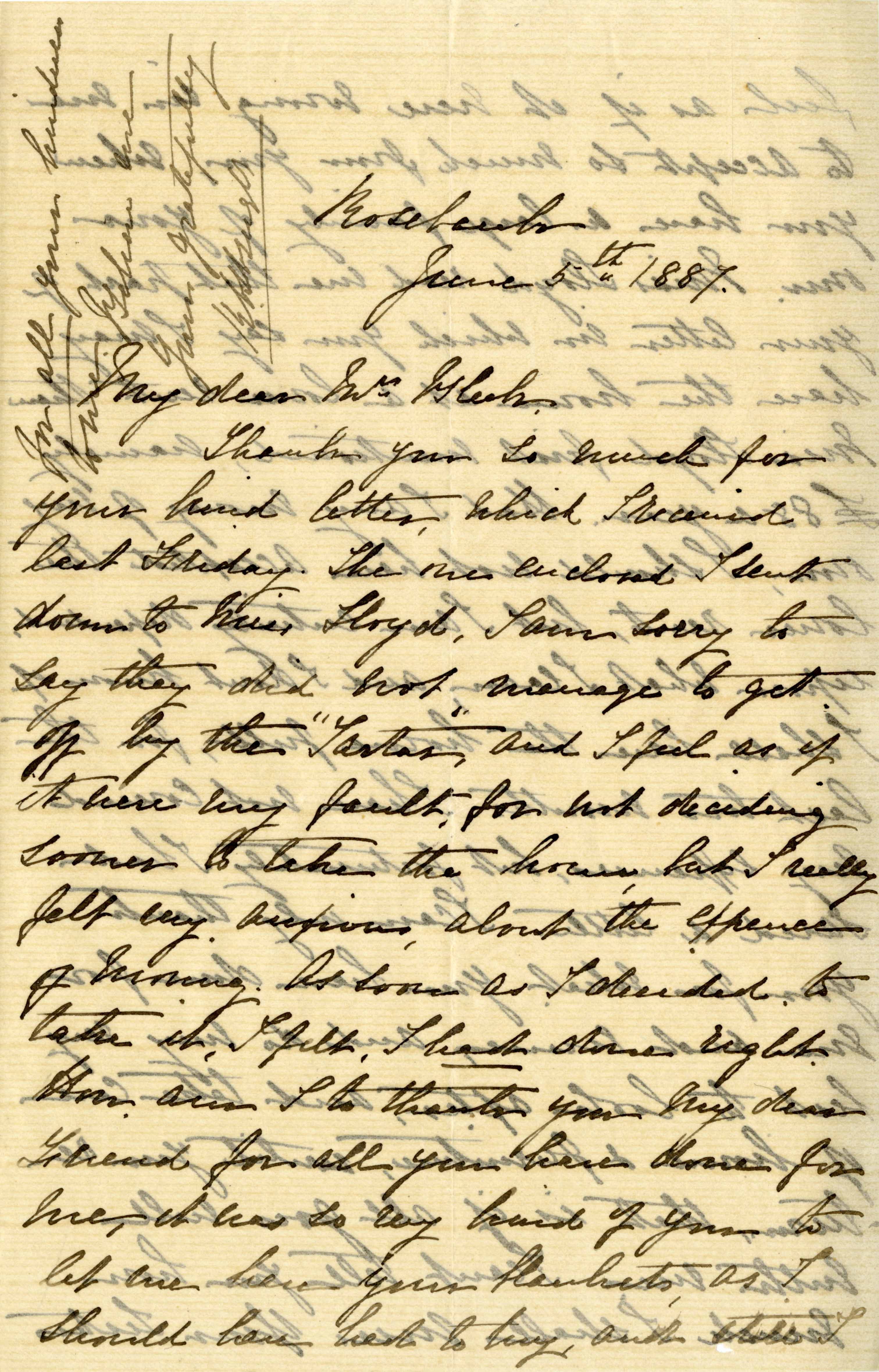Letter from Katharine Bright to Jemima Bleek, from Rosebank in Cape Town, 5 June 1887.