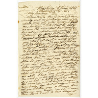 A letter from Wilhelm to Jemima, sent from Mowbray on 6 January, 1866. Jemima is in Kalk Bay with her sister Fanny on account of Jemima's painful back. He wants Jemima to stay for at least a week, due to expected wind and heat at home, and will then send a carriage for them.