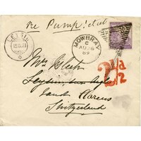 Envelope of Katharine Bright's letter to Jemima Bleek in Switzerland, posted in Mowbray, Cape Town, 28 August 1889.