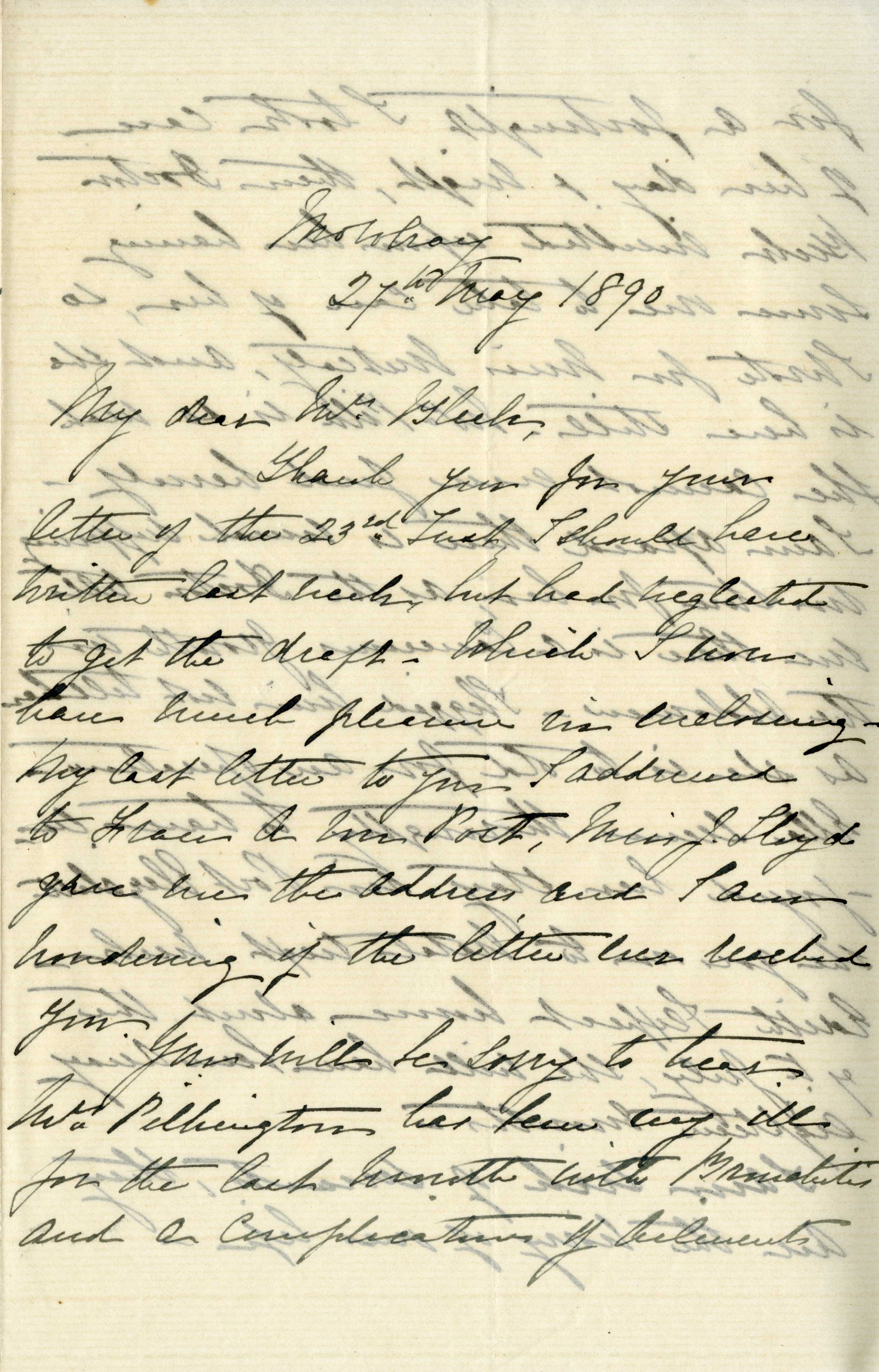 Letter from Katharine Bright to Jemima Bleek, from Mowbray in Cape Town, 27 May 1890.