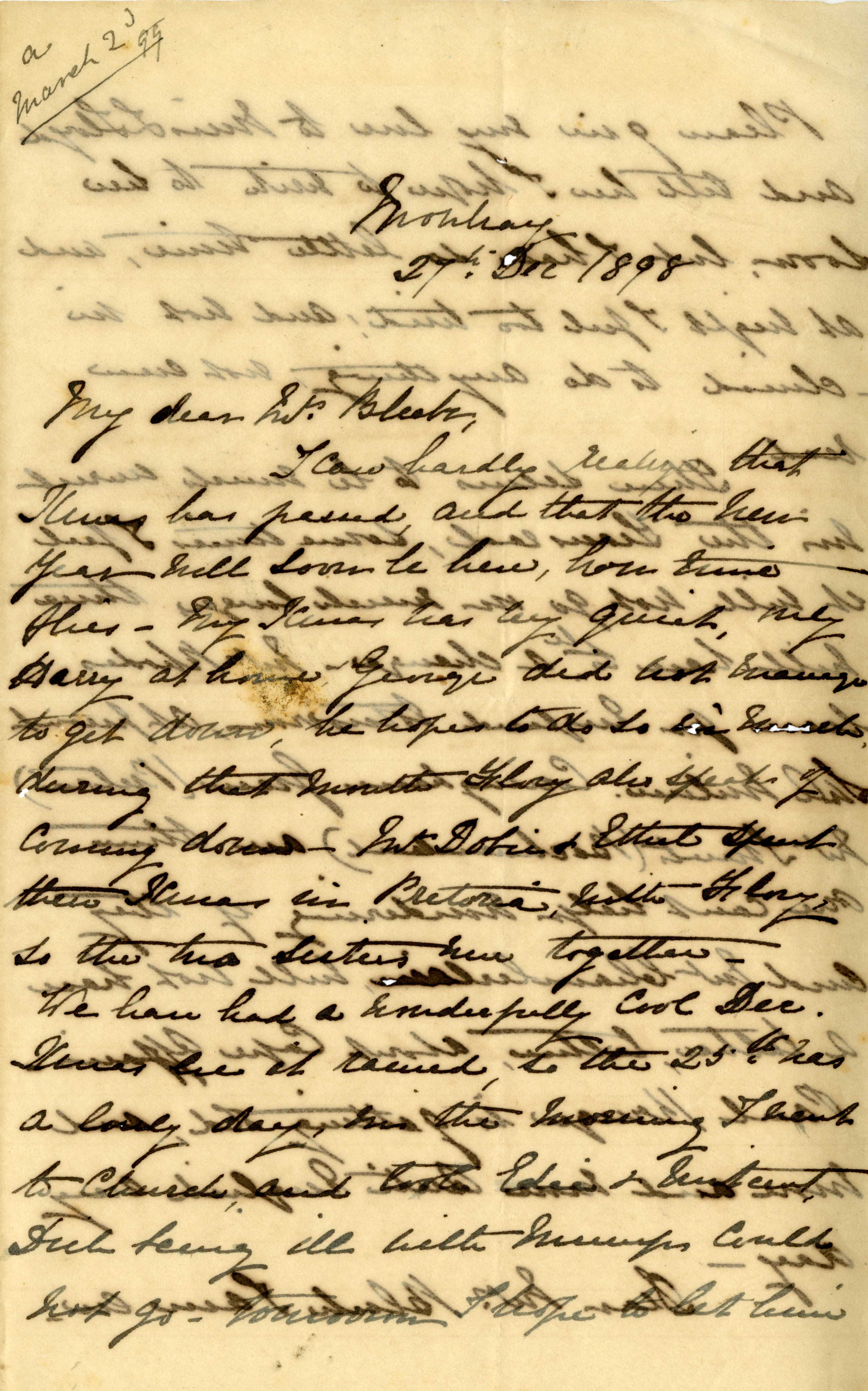 Letter from Katharine Bright to Jemima Bleek, from Mowbray in Cape Town, 27 December 1898.