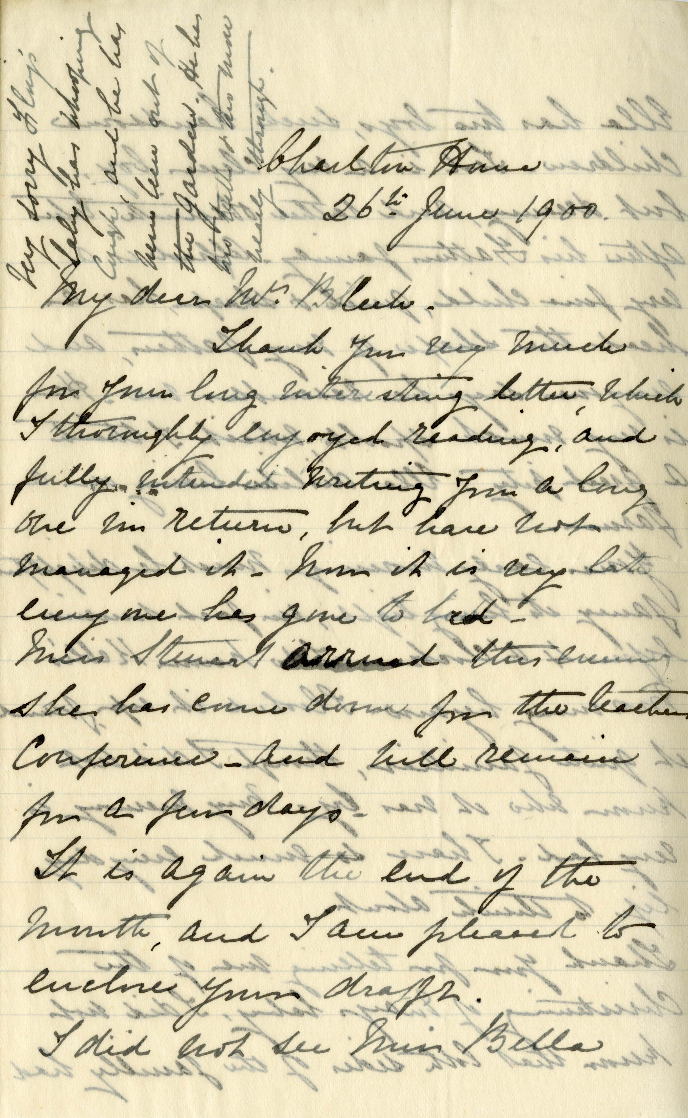 1. The Brights rented Charlton House from Jemima while she and her family lived in Germany. The Brights moved in on 6 June 1887 and Jemima returned in 1904. 2. The letter description is taken from the Bleek-Lloyd Scott Family Archive Catalog 2007. [See Resources on this website]