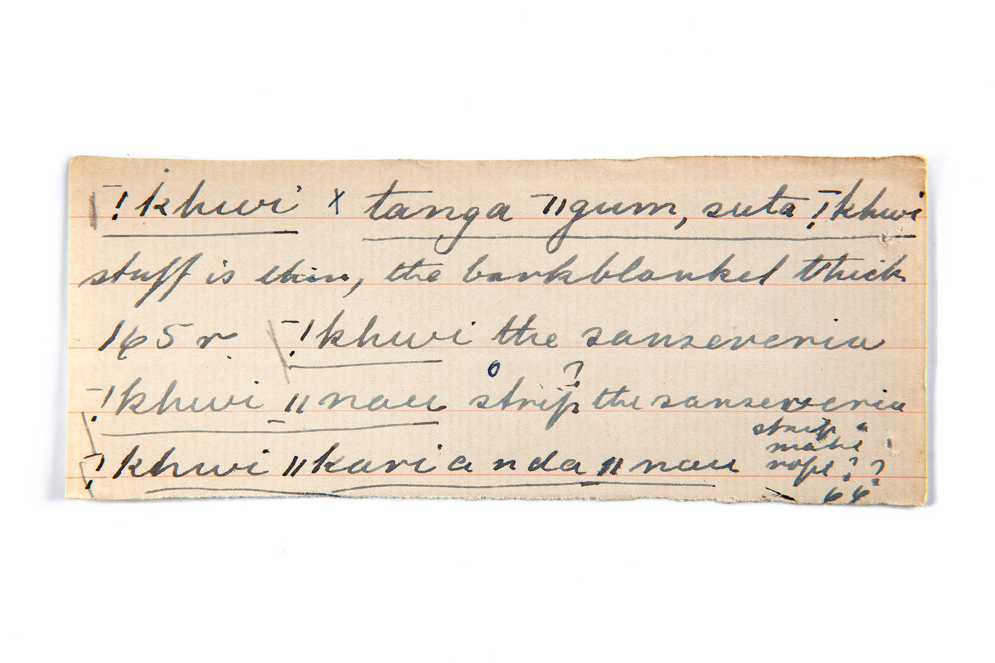thin (stuff), thick (the barkblanket), sanseveria, strip the sanseveria, make rope