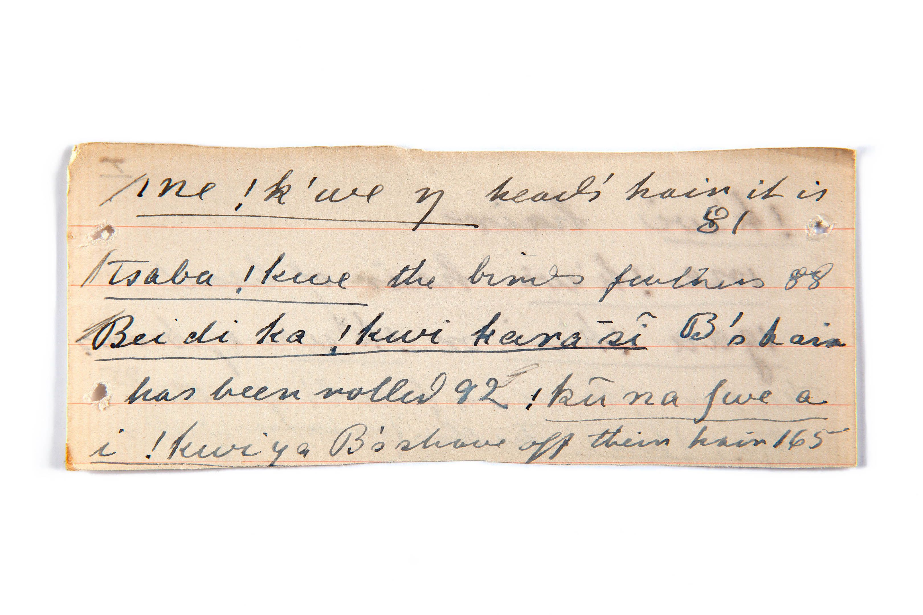 head's hair, birds feathers, Bushmen hair (rolled), Bushmen shave off their hair