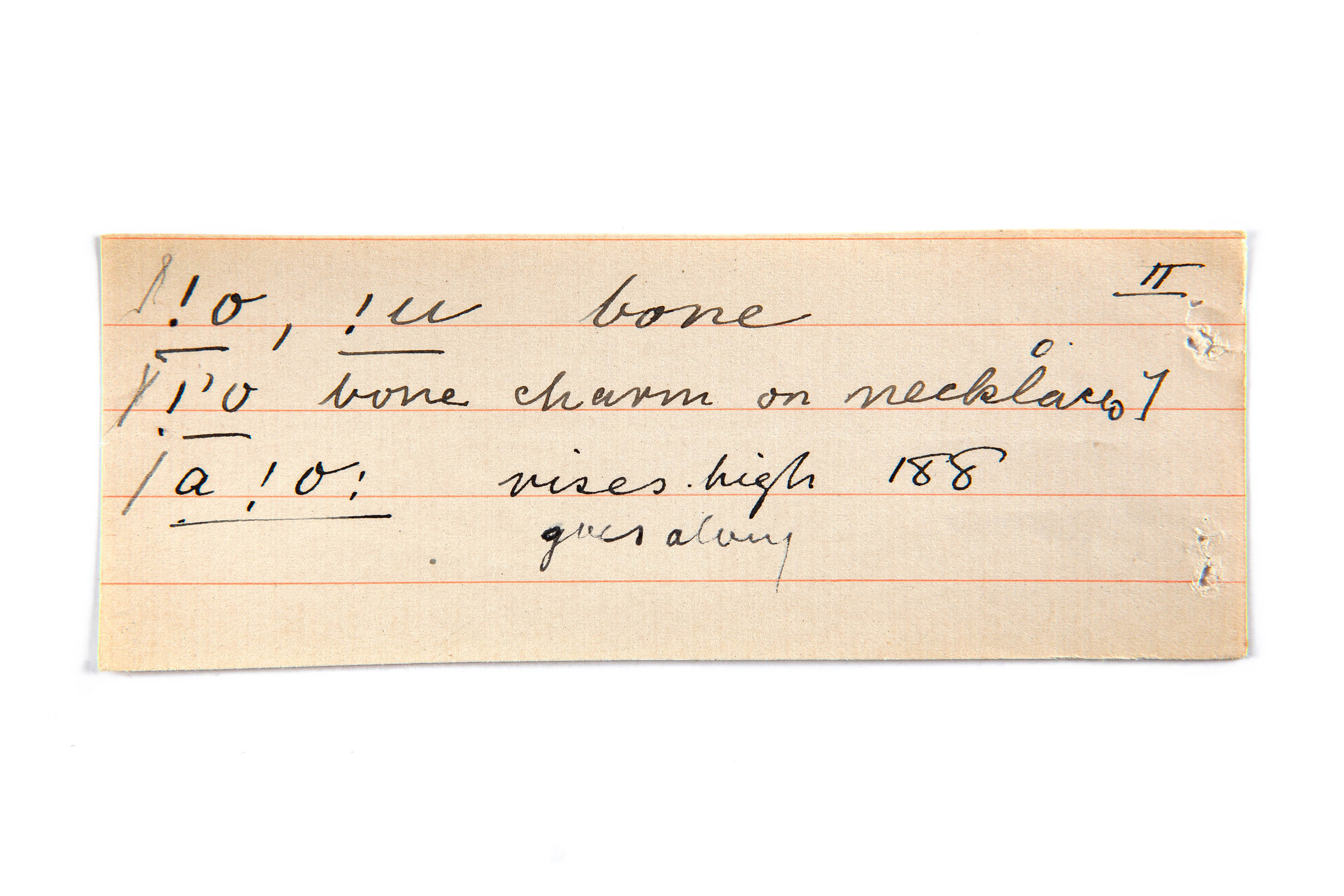 bone, (charm on necklace), rises high, goes along