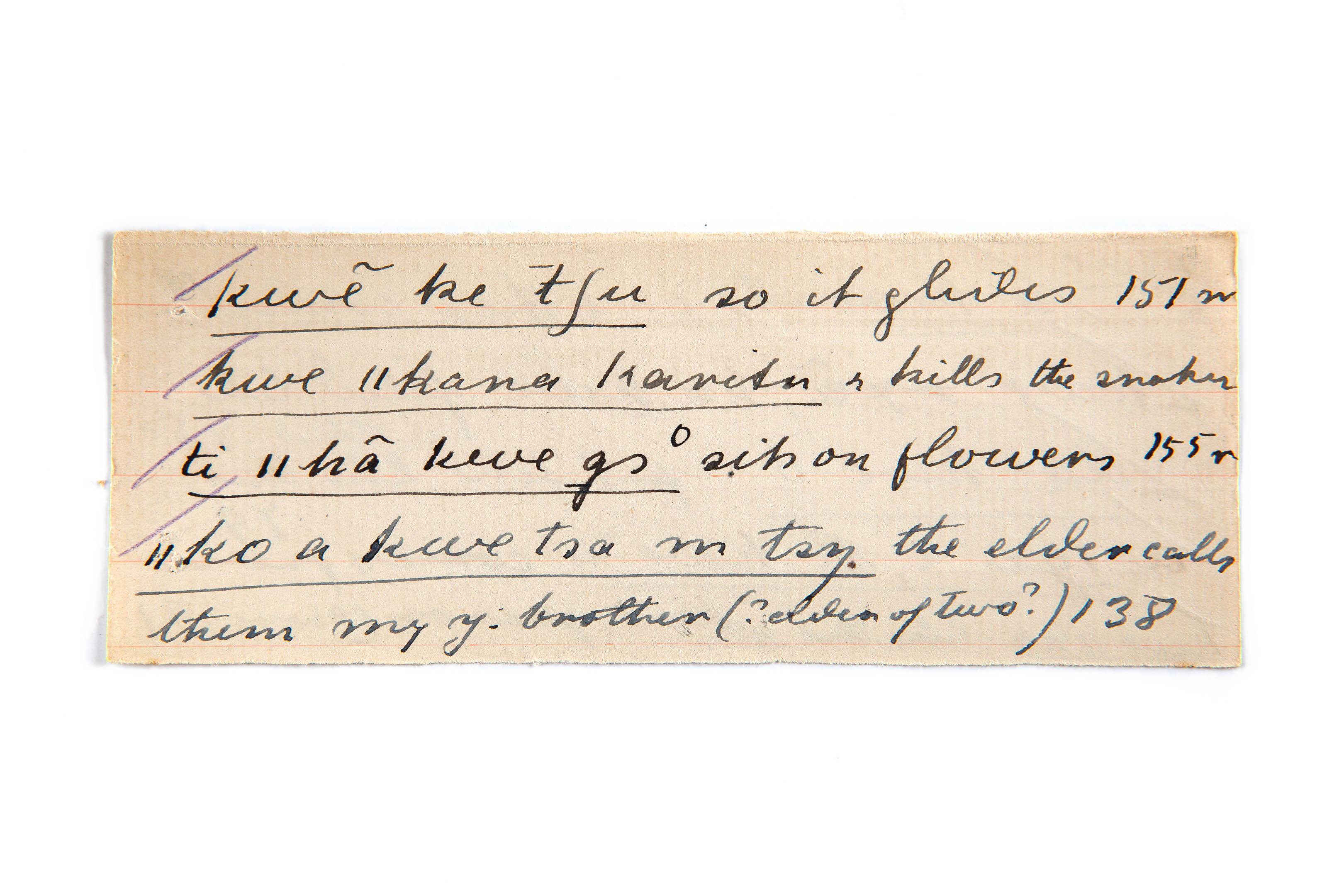 so (it glides), kills the snake, sits on flowers, calls them (the elder)