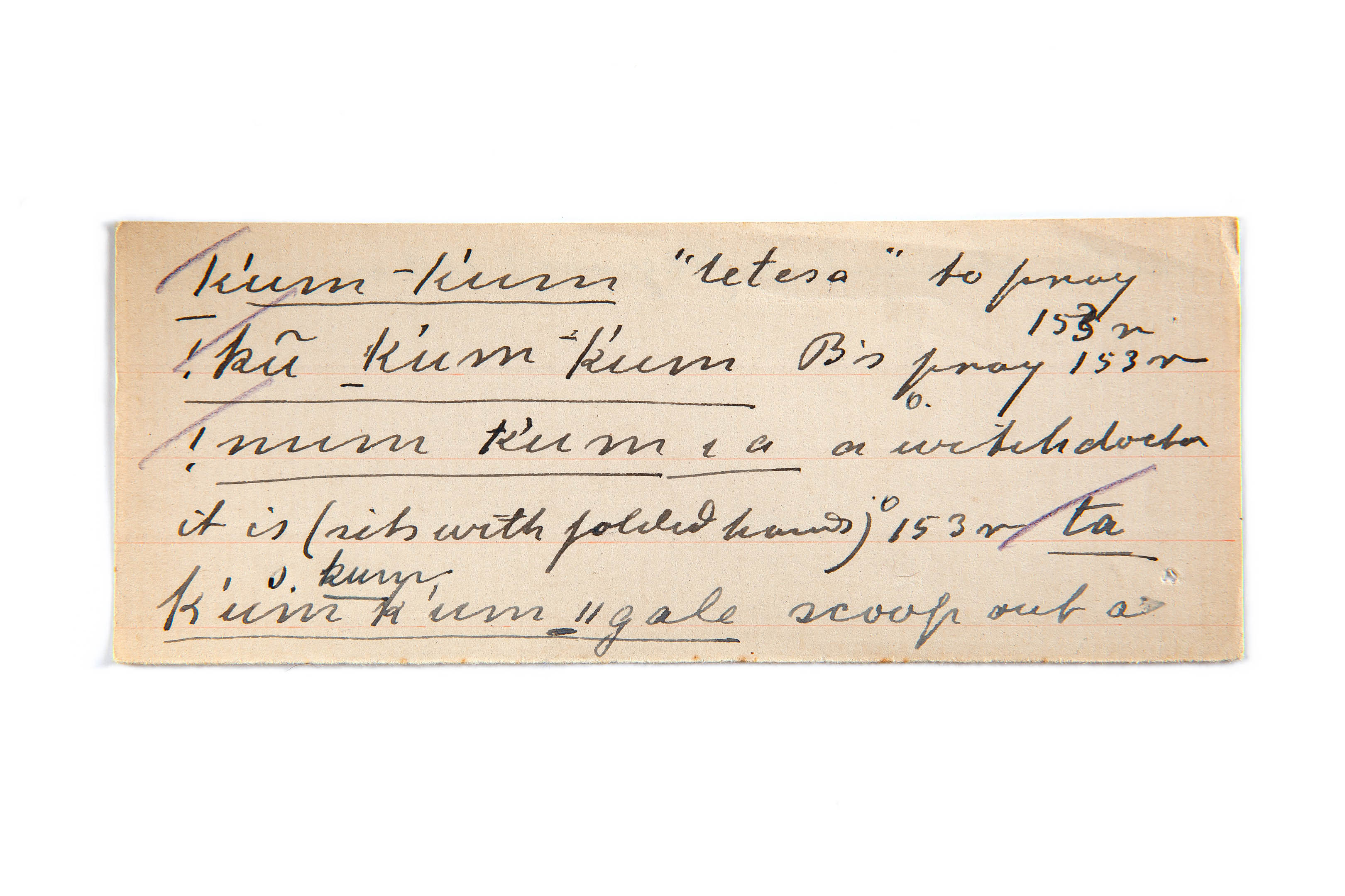 pray (tetesa), witchdoctor (sits with folded hands), scoop out a side chamber (grave)
