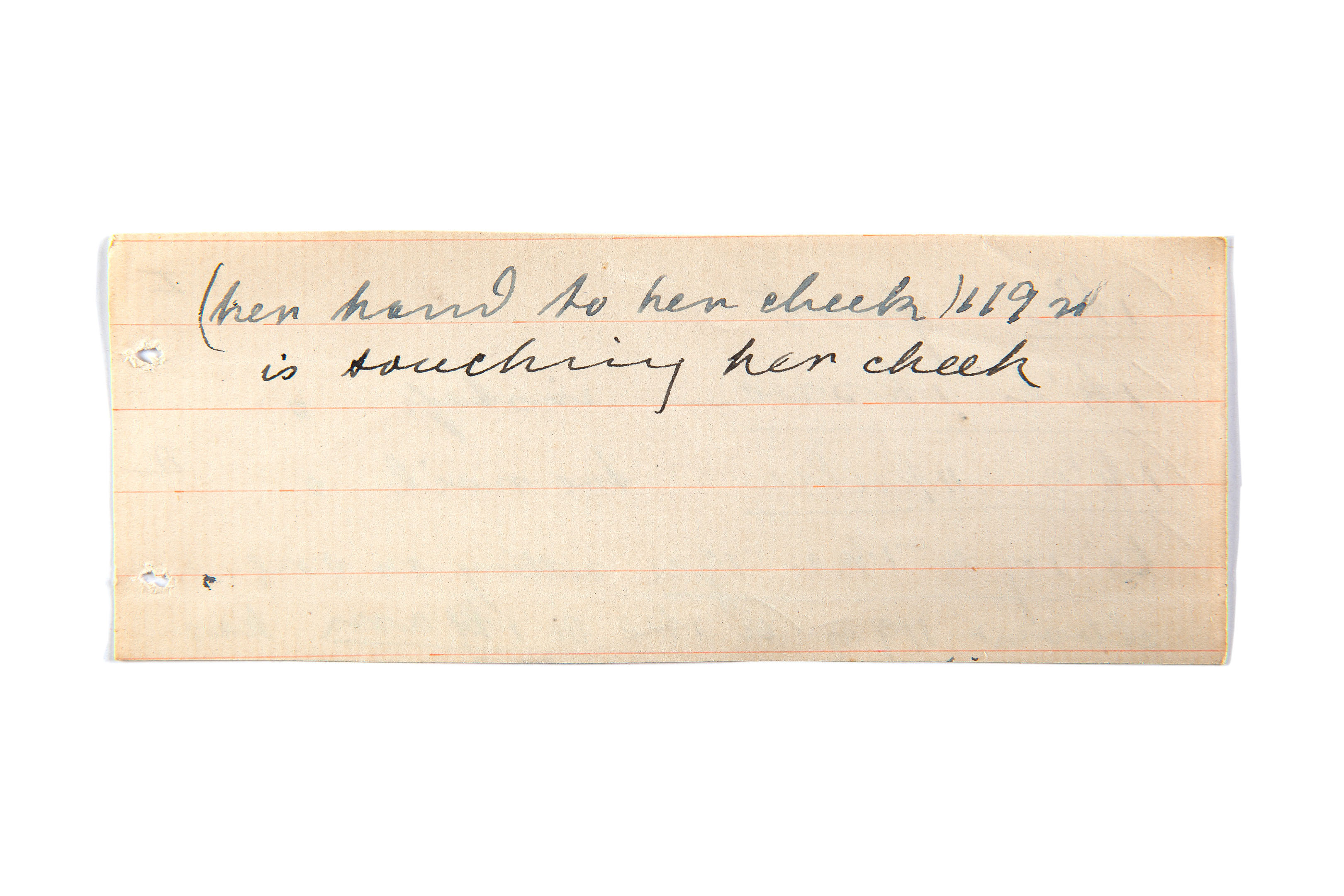 hand to cheek, is touching her cheek