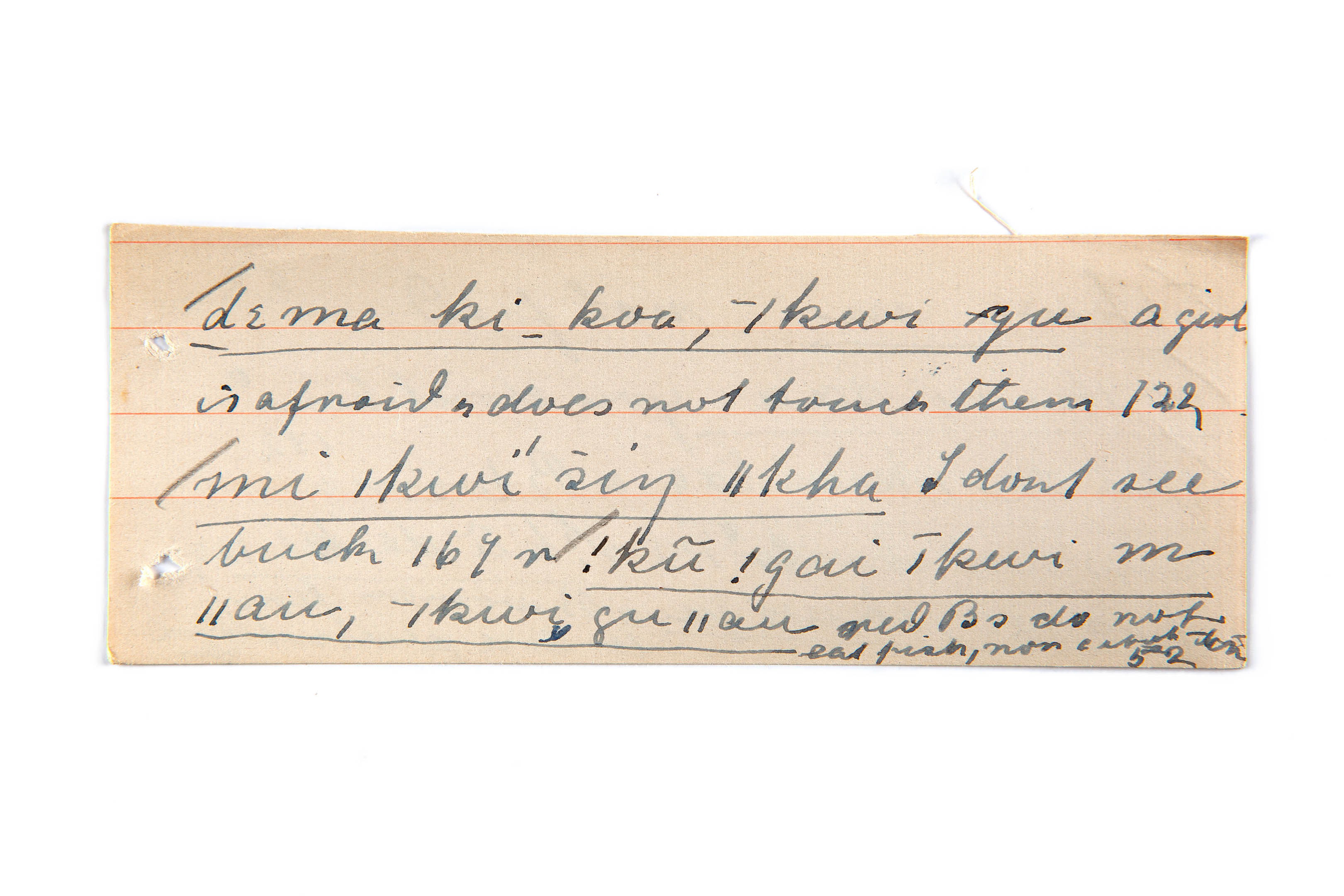 does not (a girl is afraid ), not see (buck), not eat (red Bushmen do not eat fish)