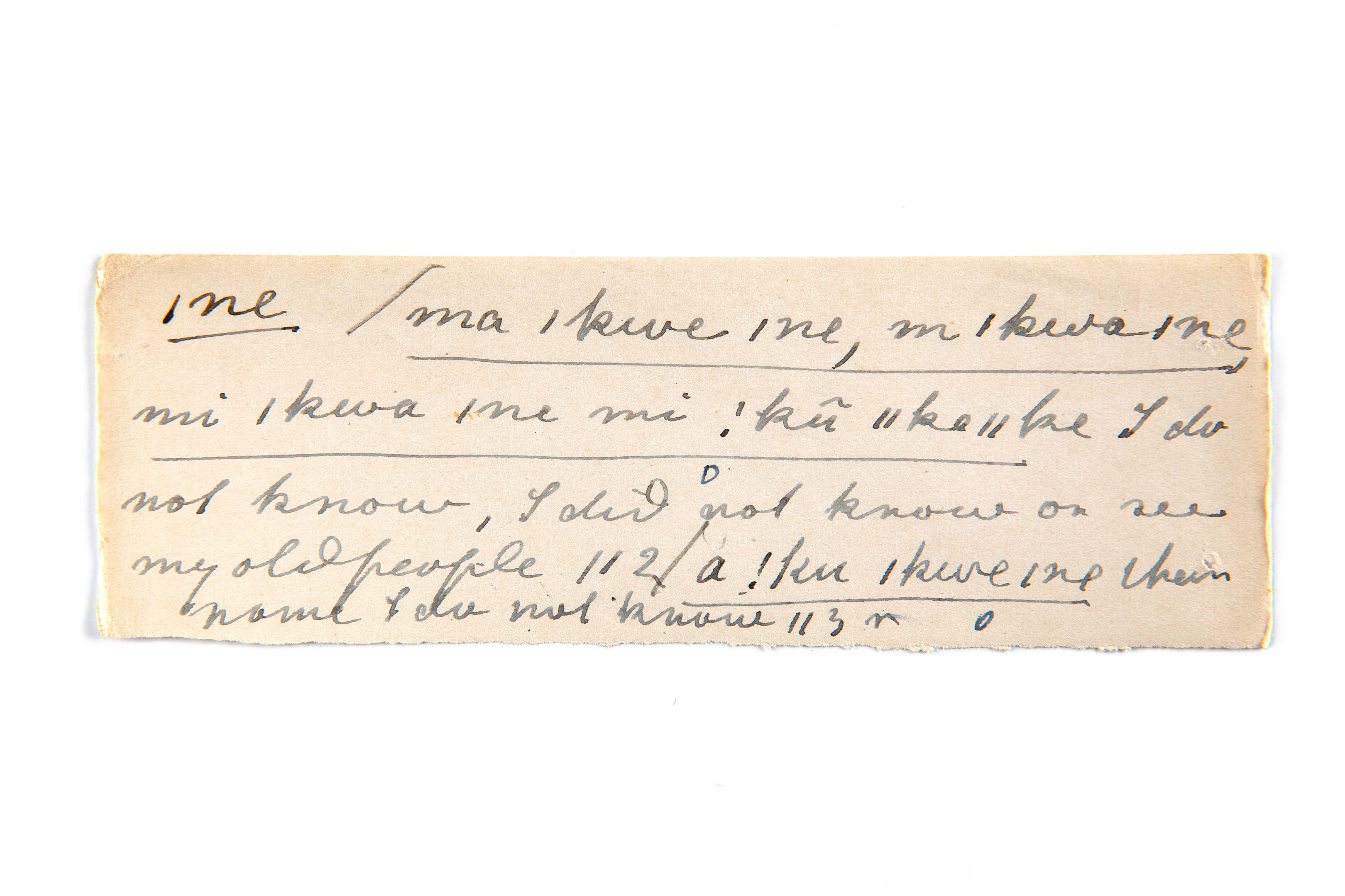 know (I do not know), see (I did not see my old people)