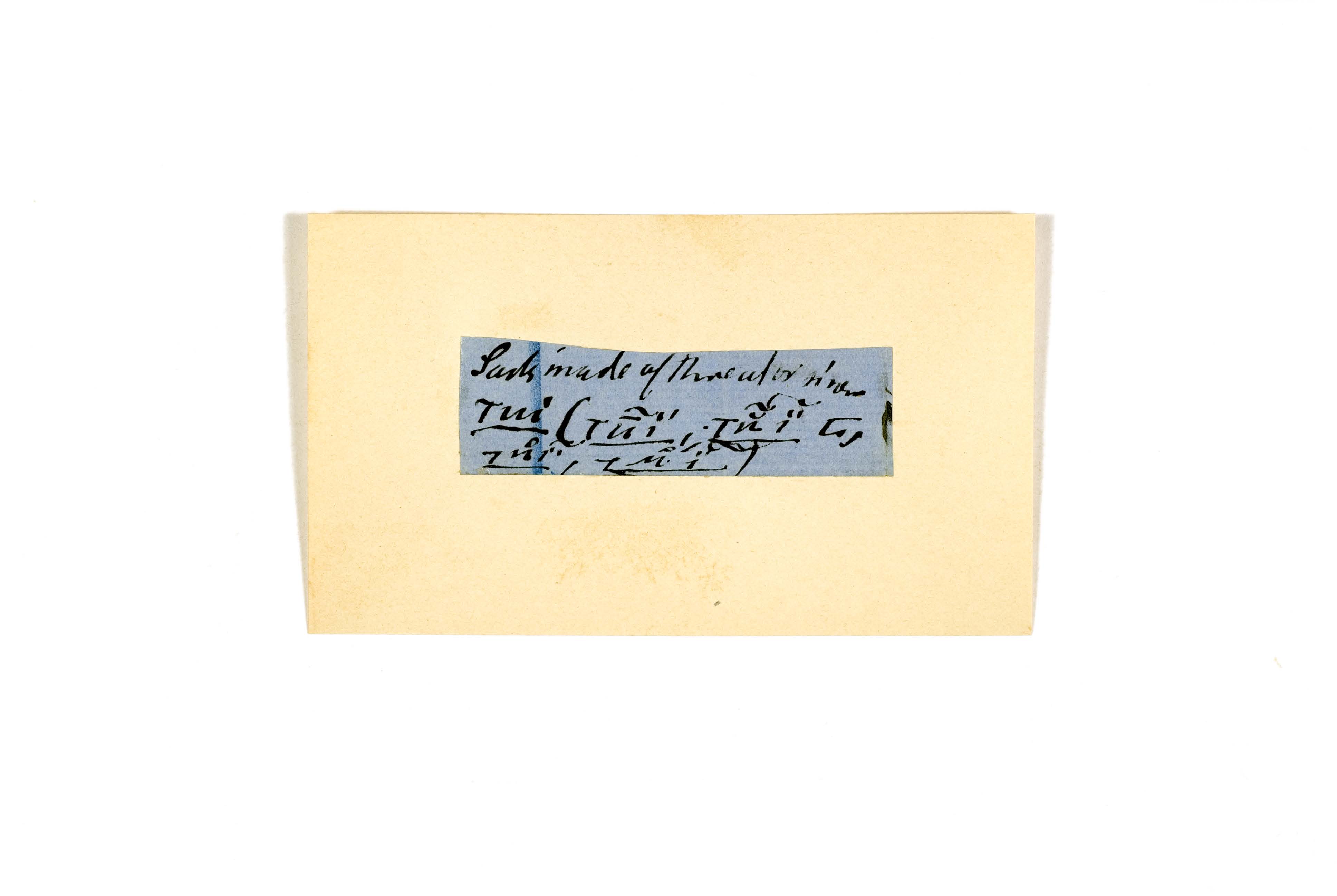 ink on blue paper glued on card