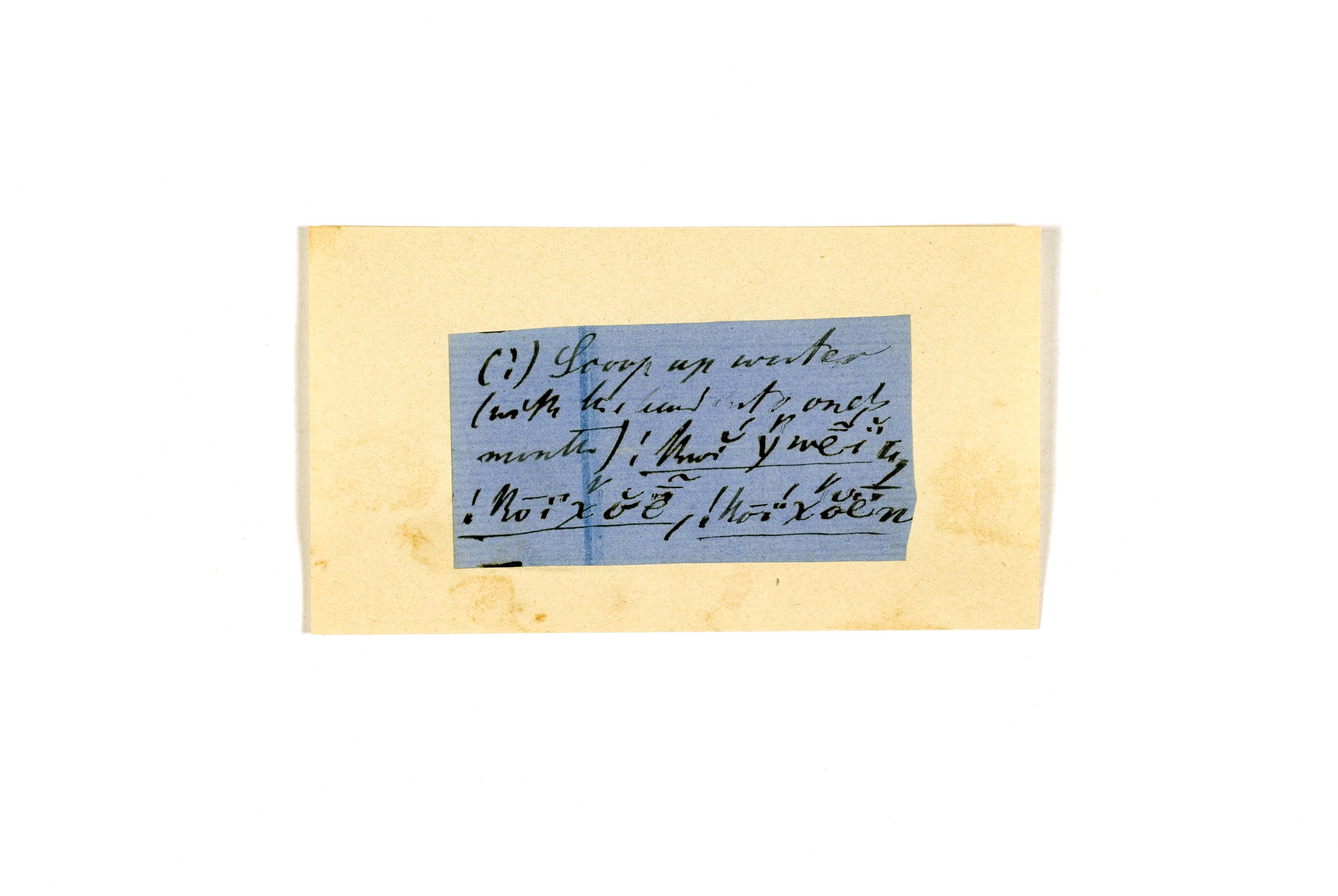 ink on blue paper glued on card