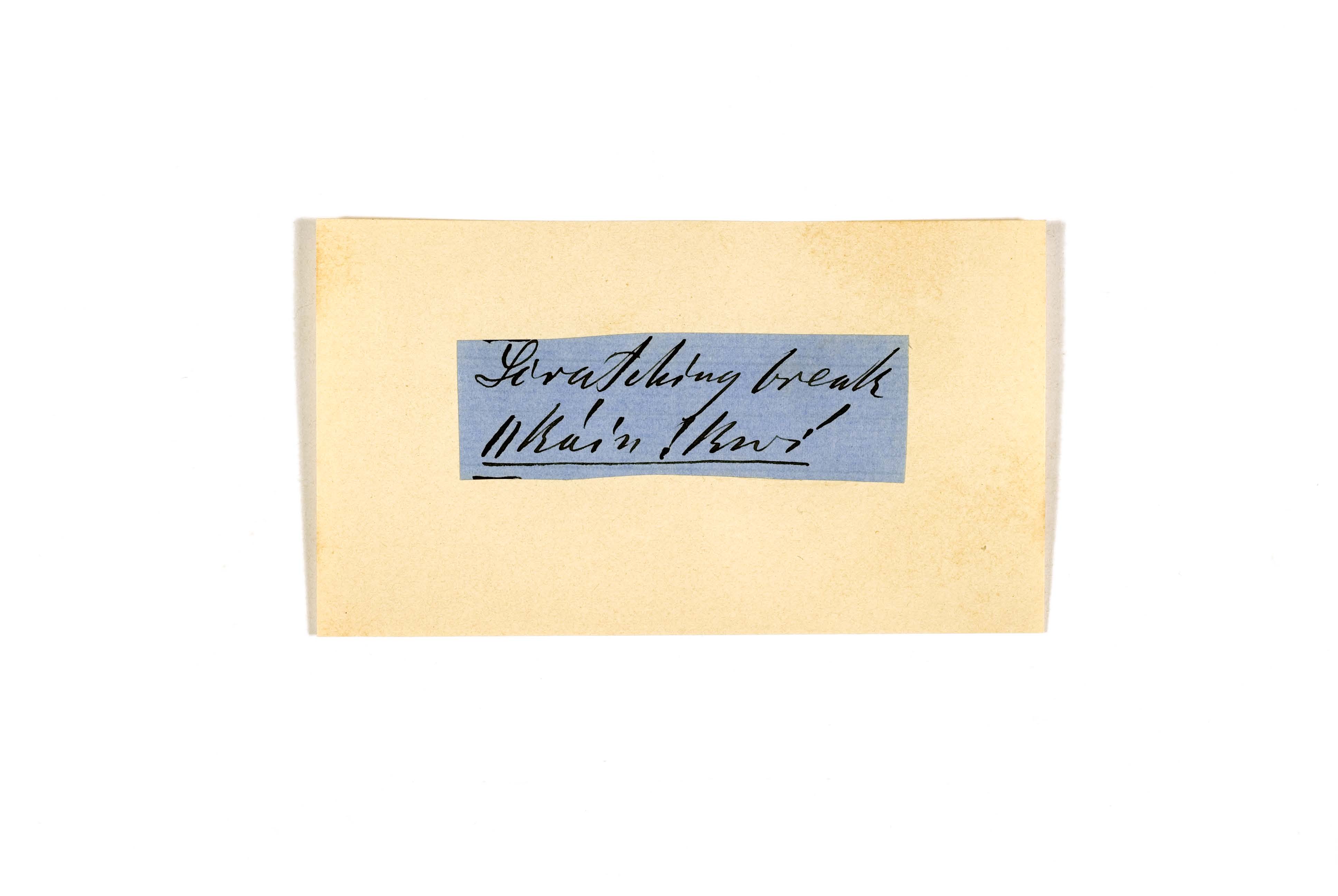 ink on blue paper glued on card