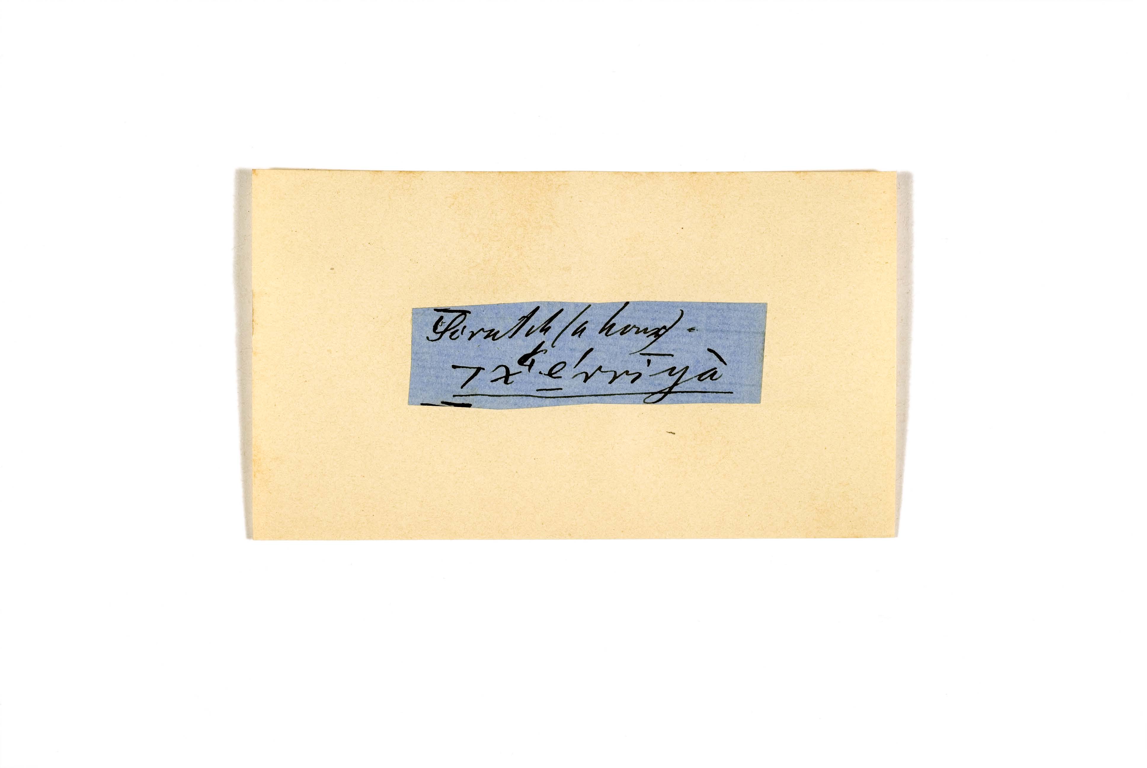ink on blue paper glued on card