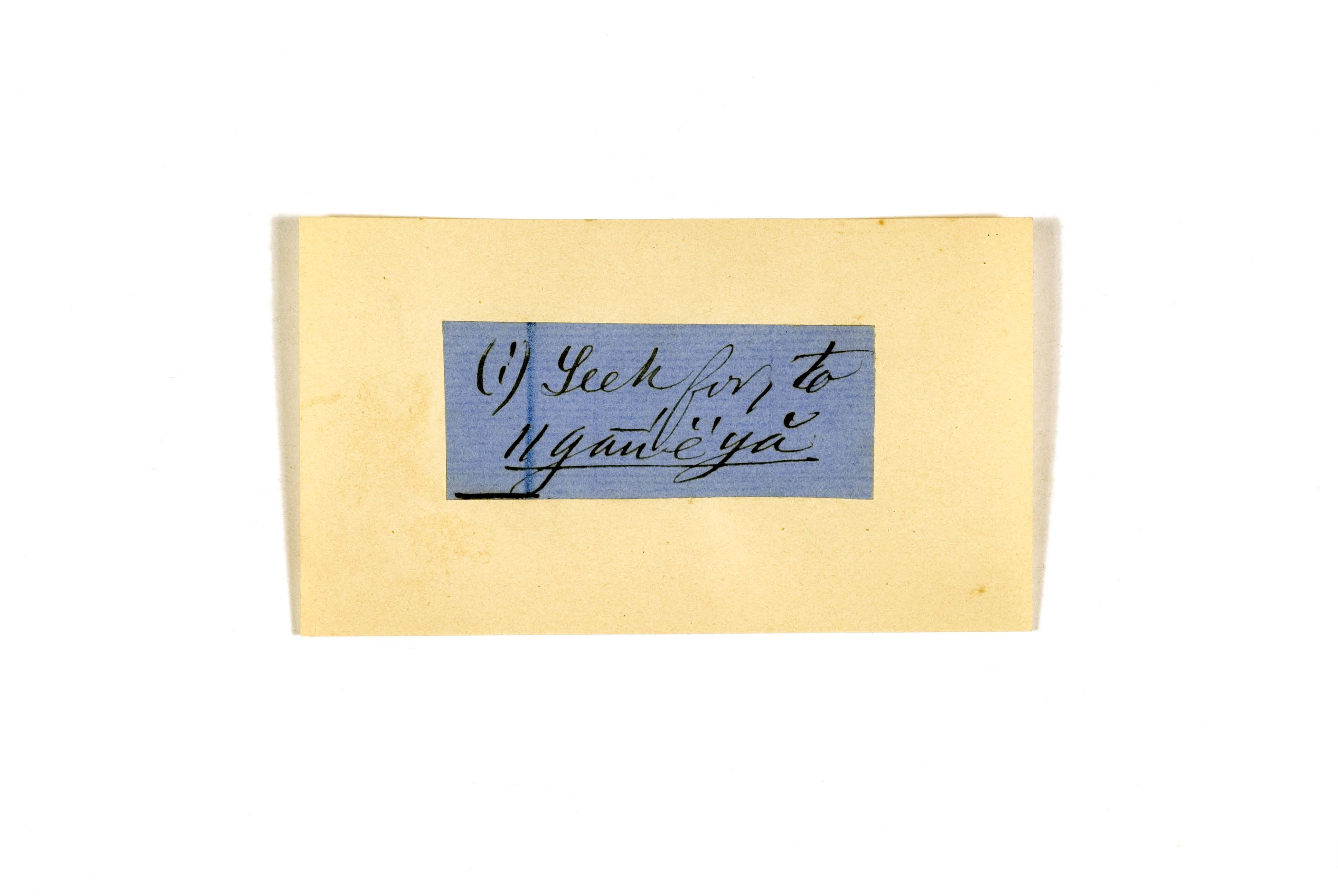 ink on blue paper glued on card