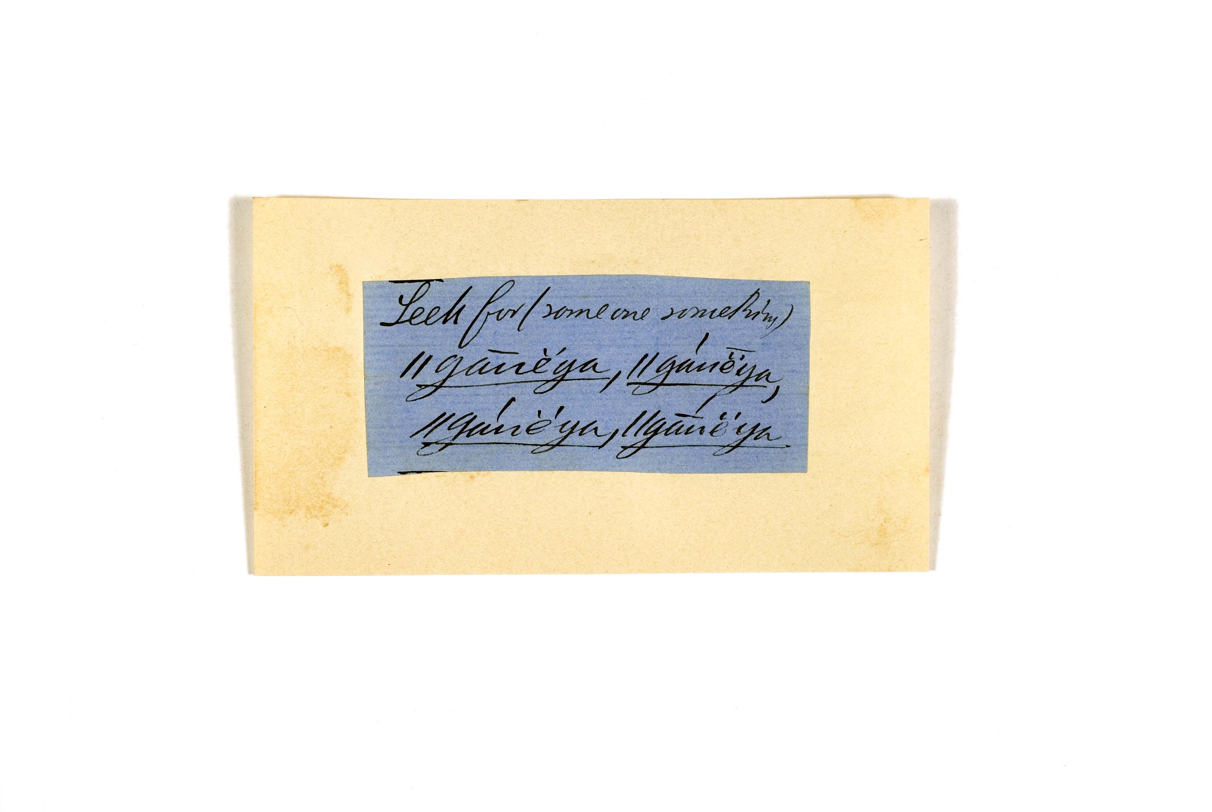 ink on blue paper glued on card
