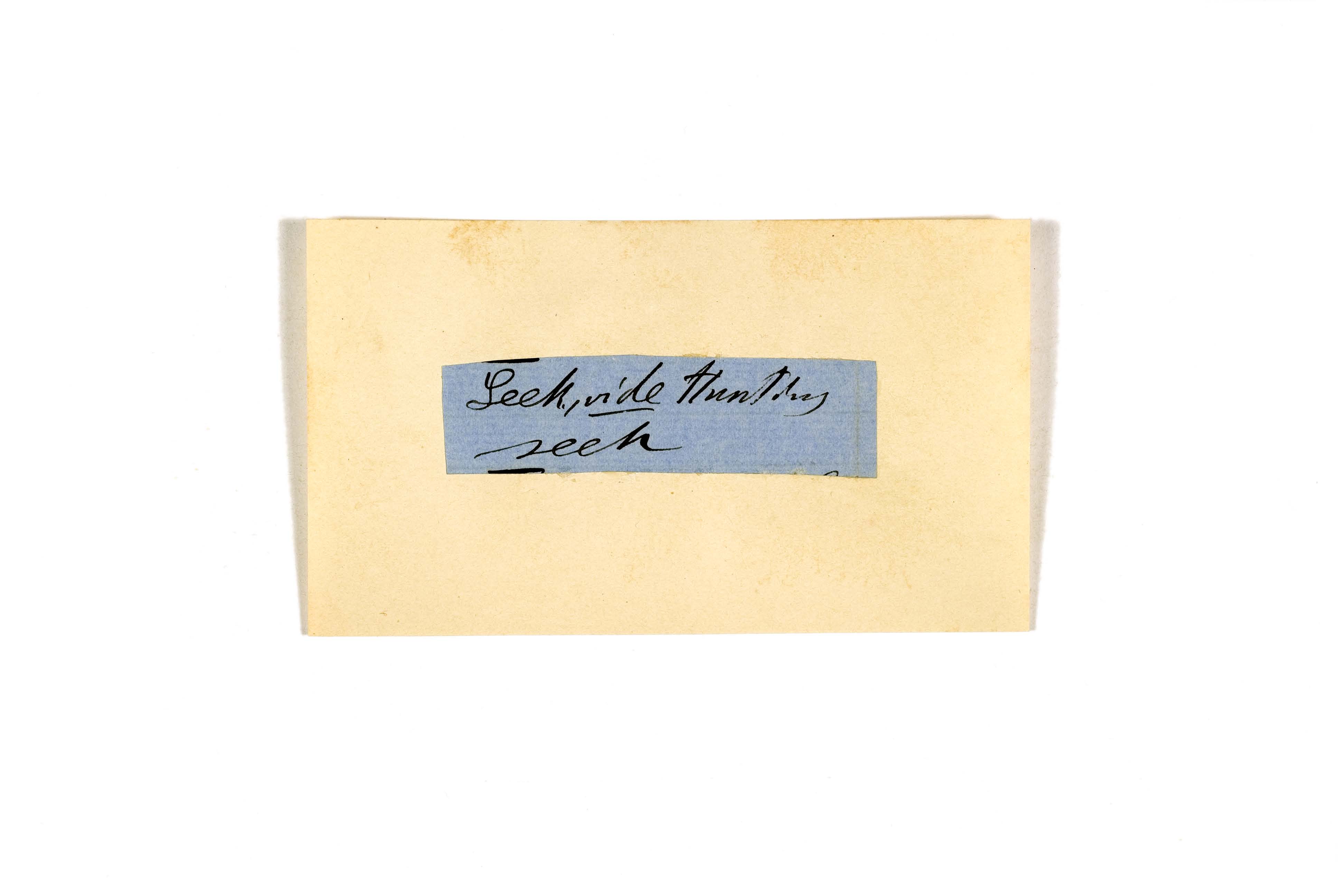 ink on blue paper glued on card