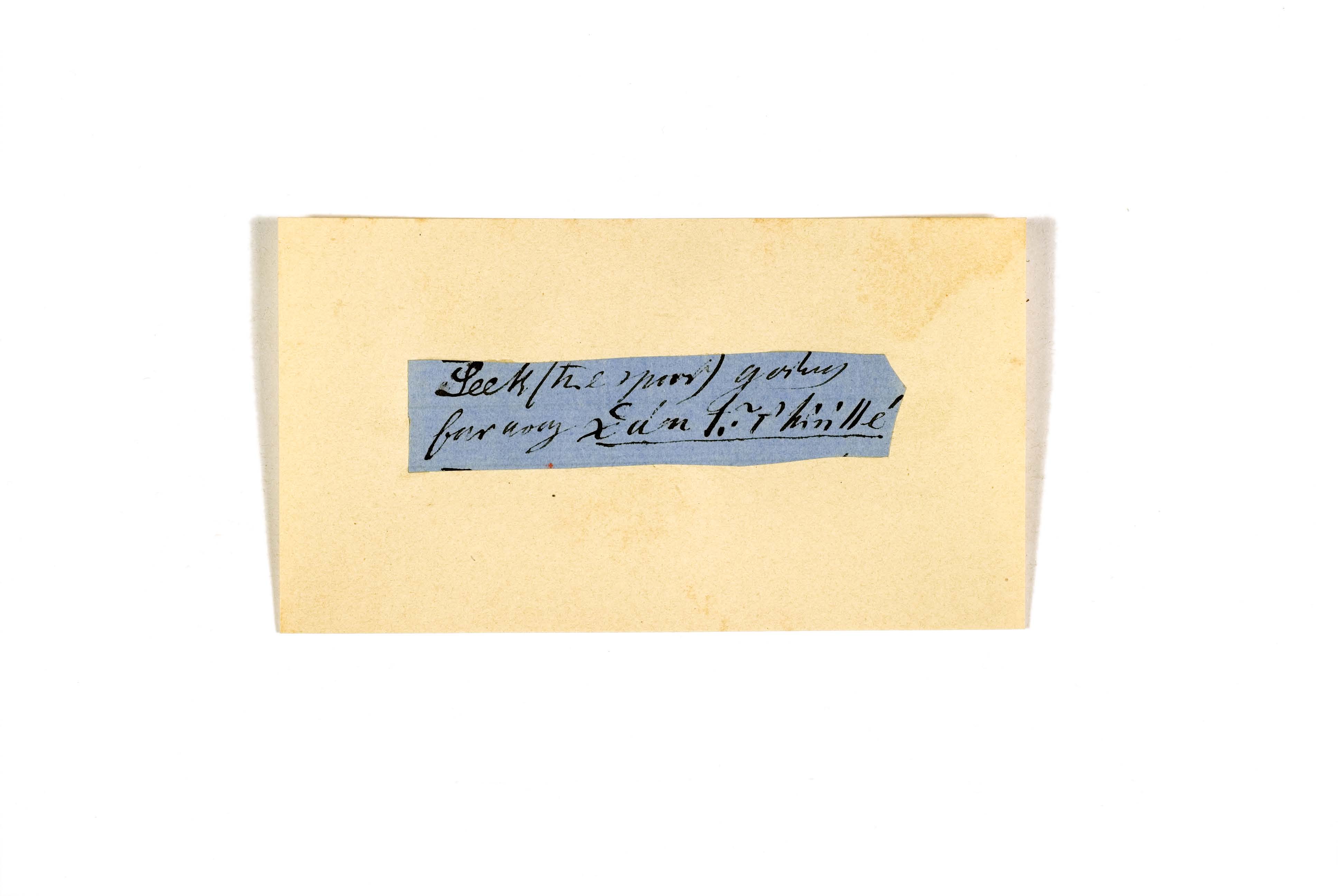ink on blue paper glued on card