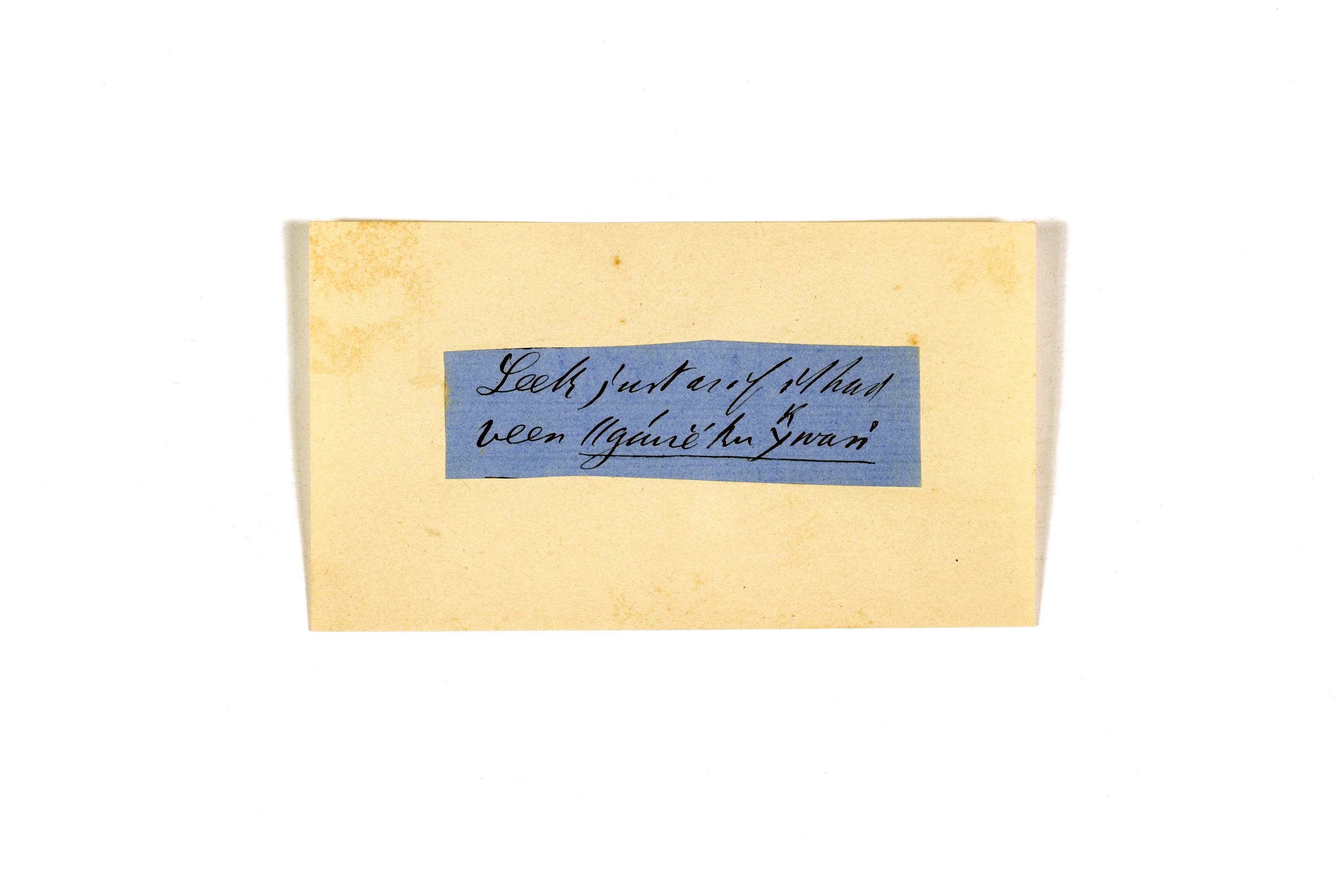 ink on blue paper glued on card