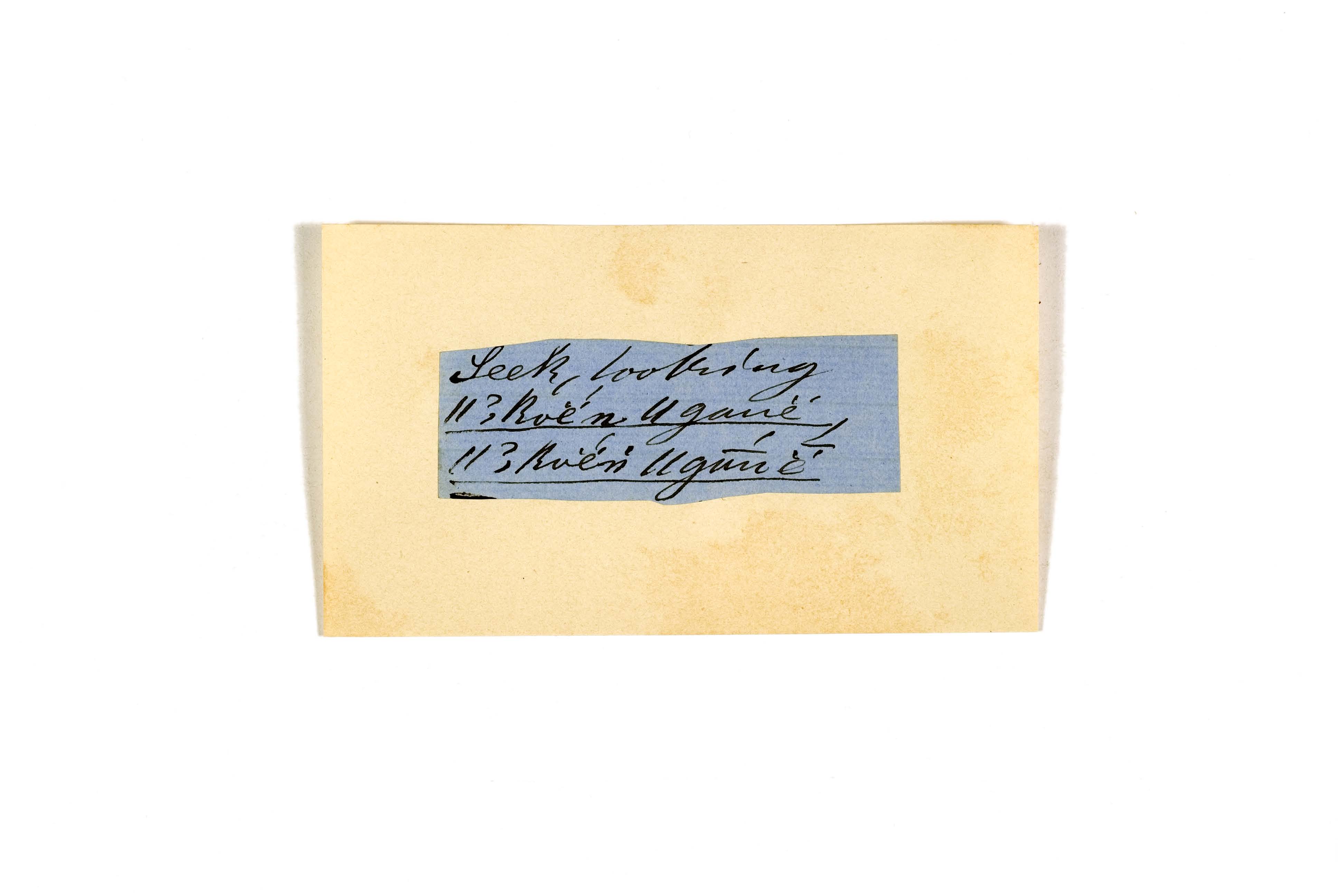 ink on blue paper glued on card