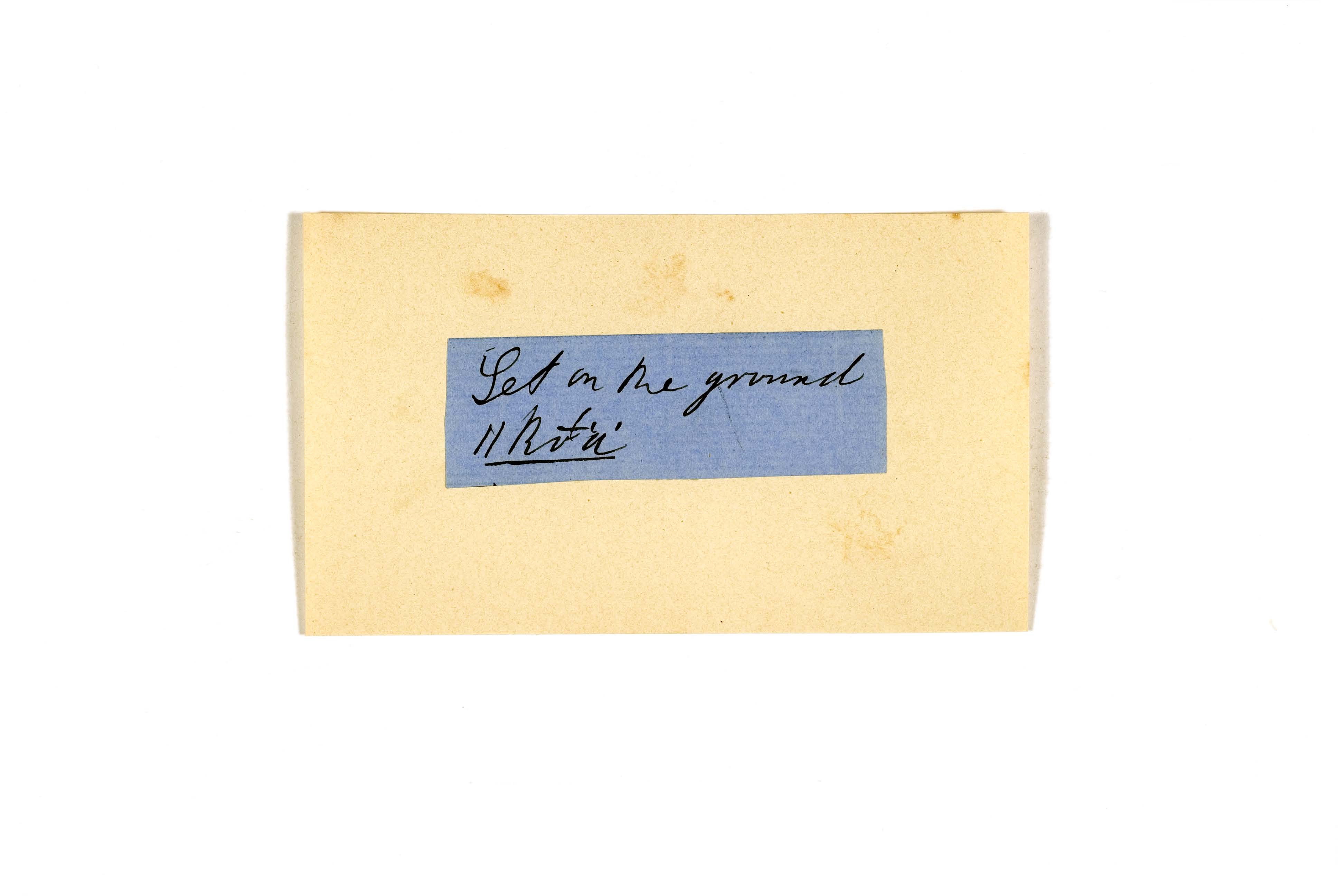 ink on blue paper glued on card