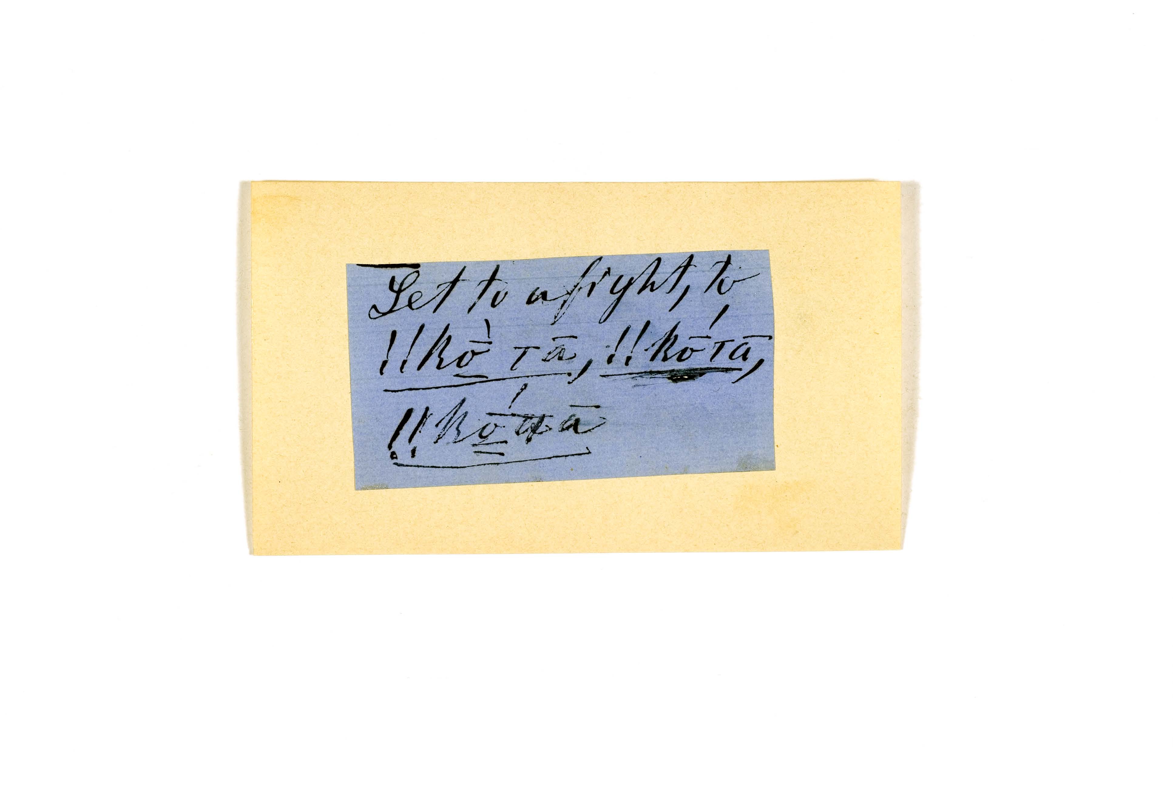 ink on blue paper glued on card