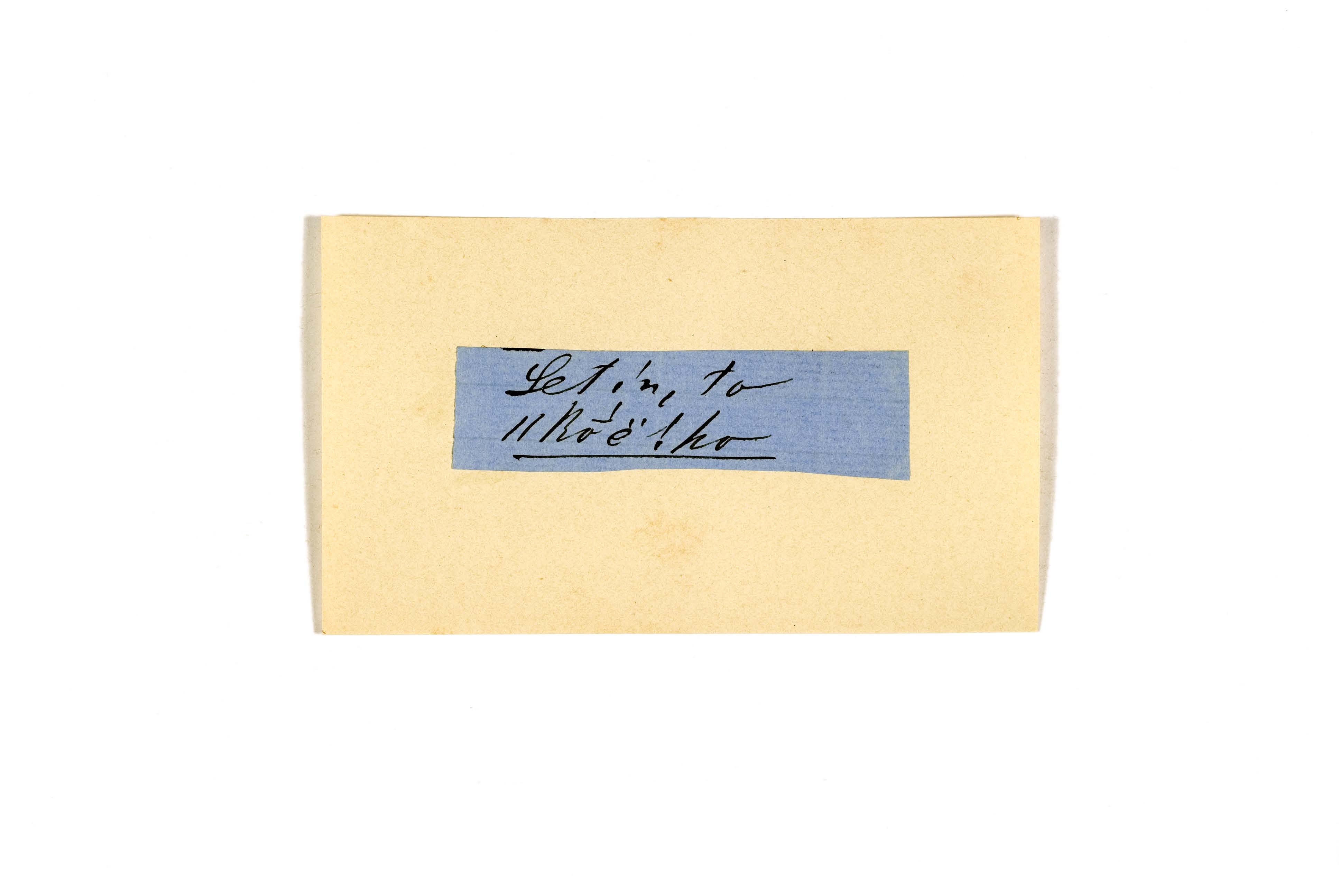 ink on blue paper glued on card