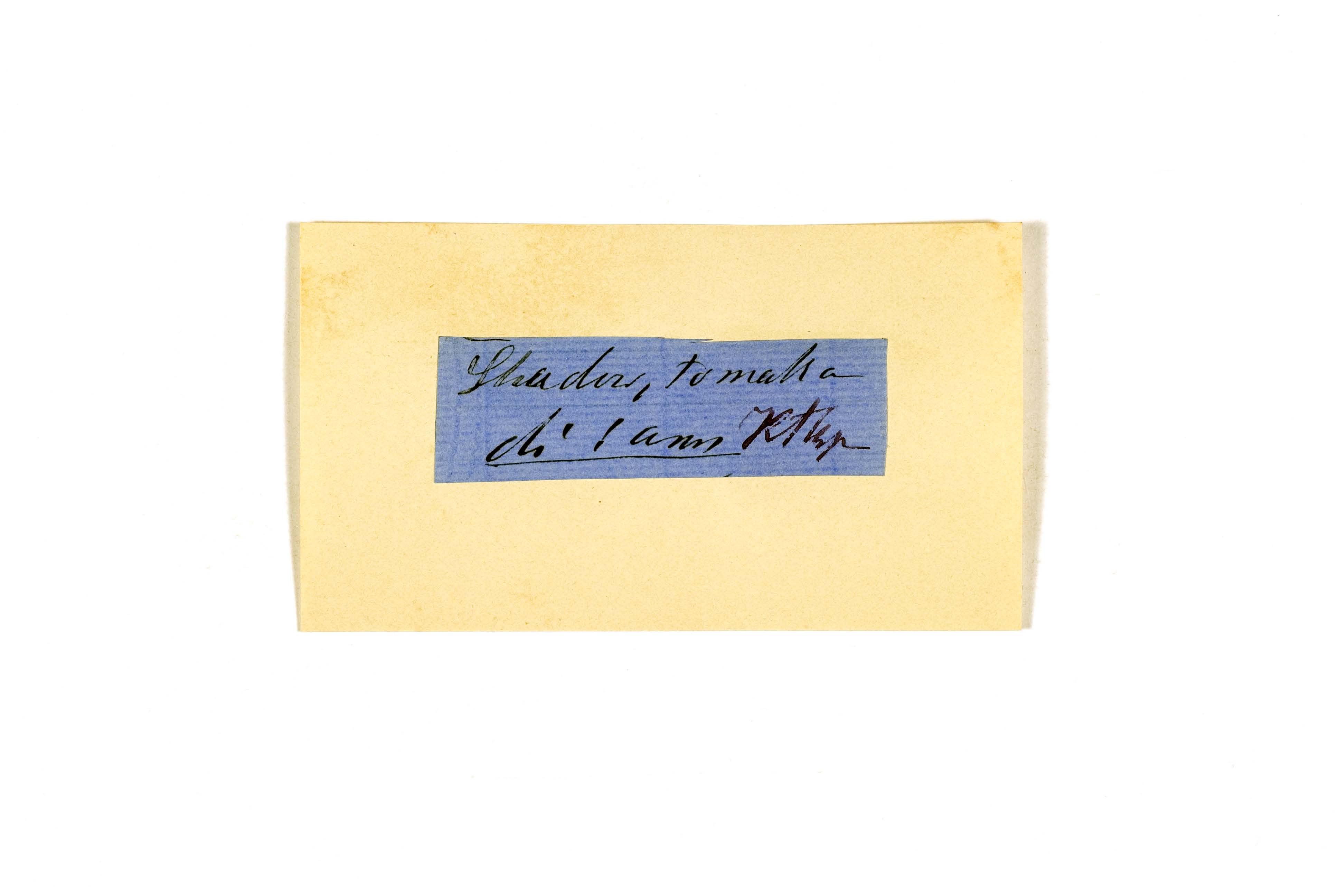 ink on blue paper glued on card