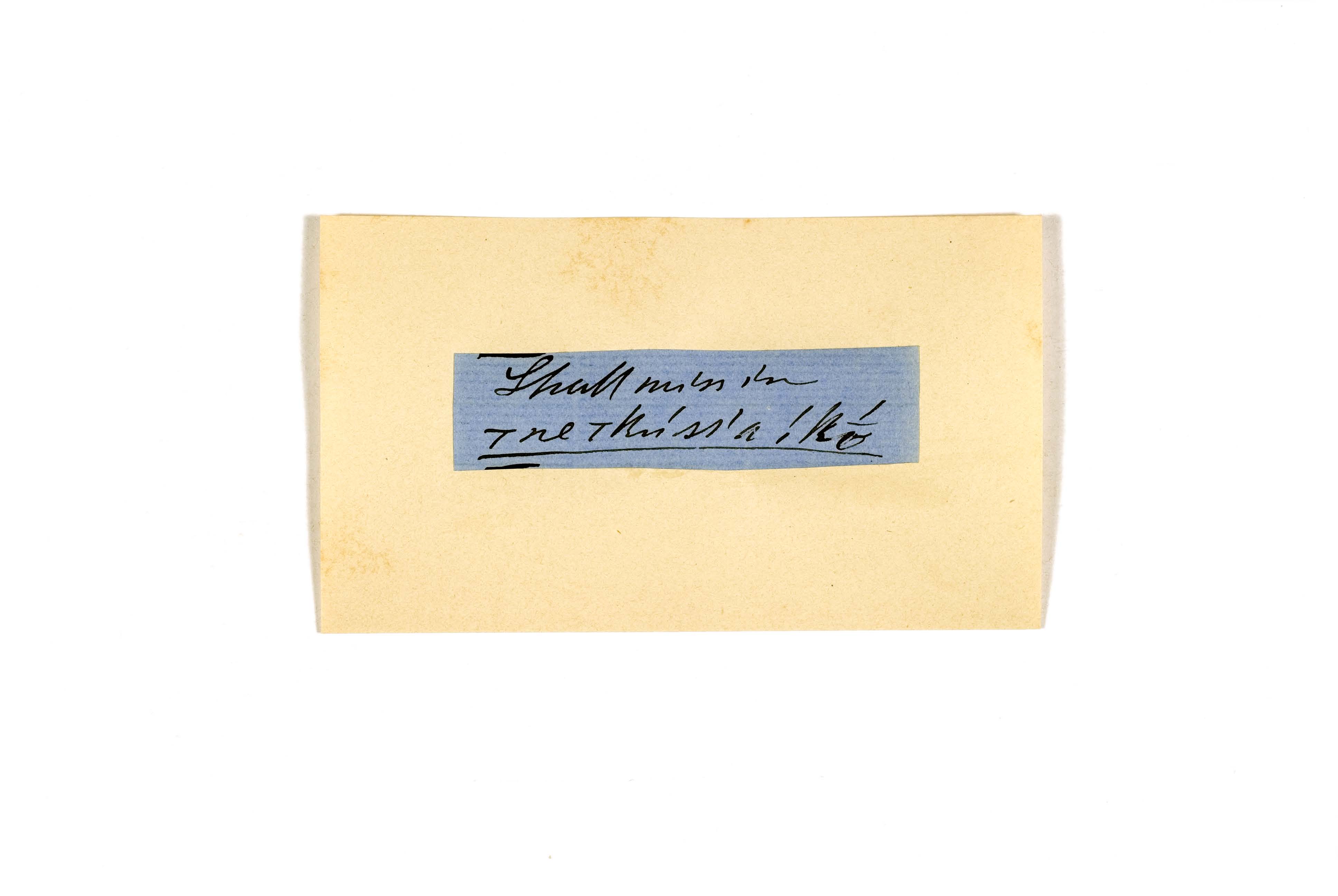 ink on blue paper glued on card