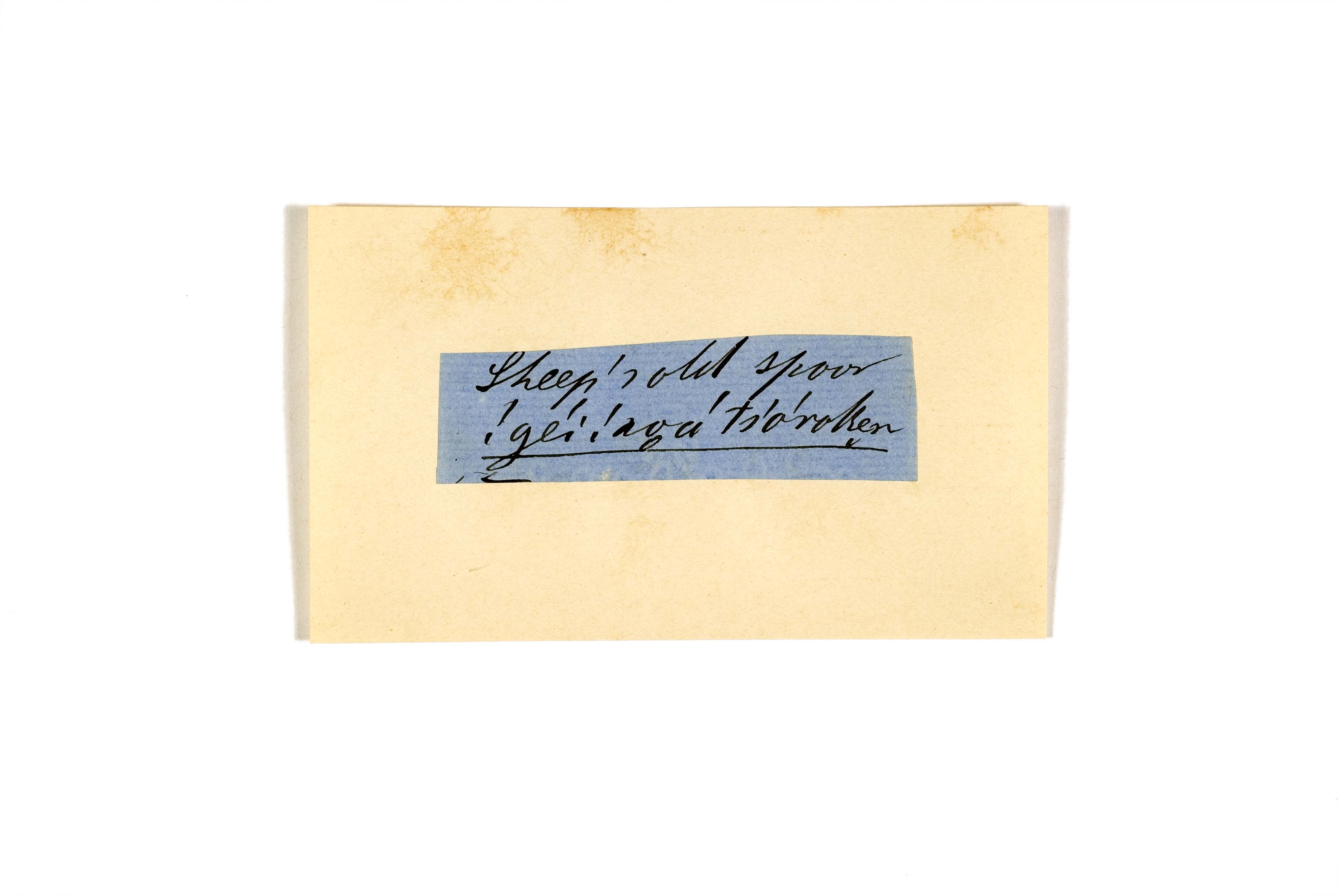 ink on blue paper glued on card