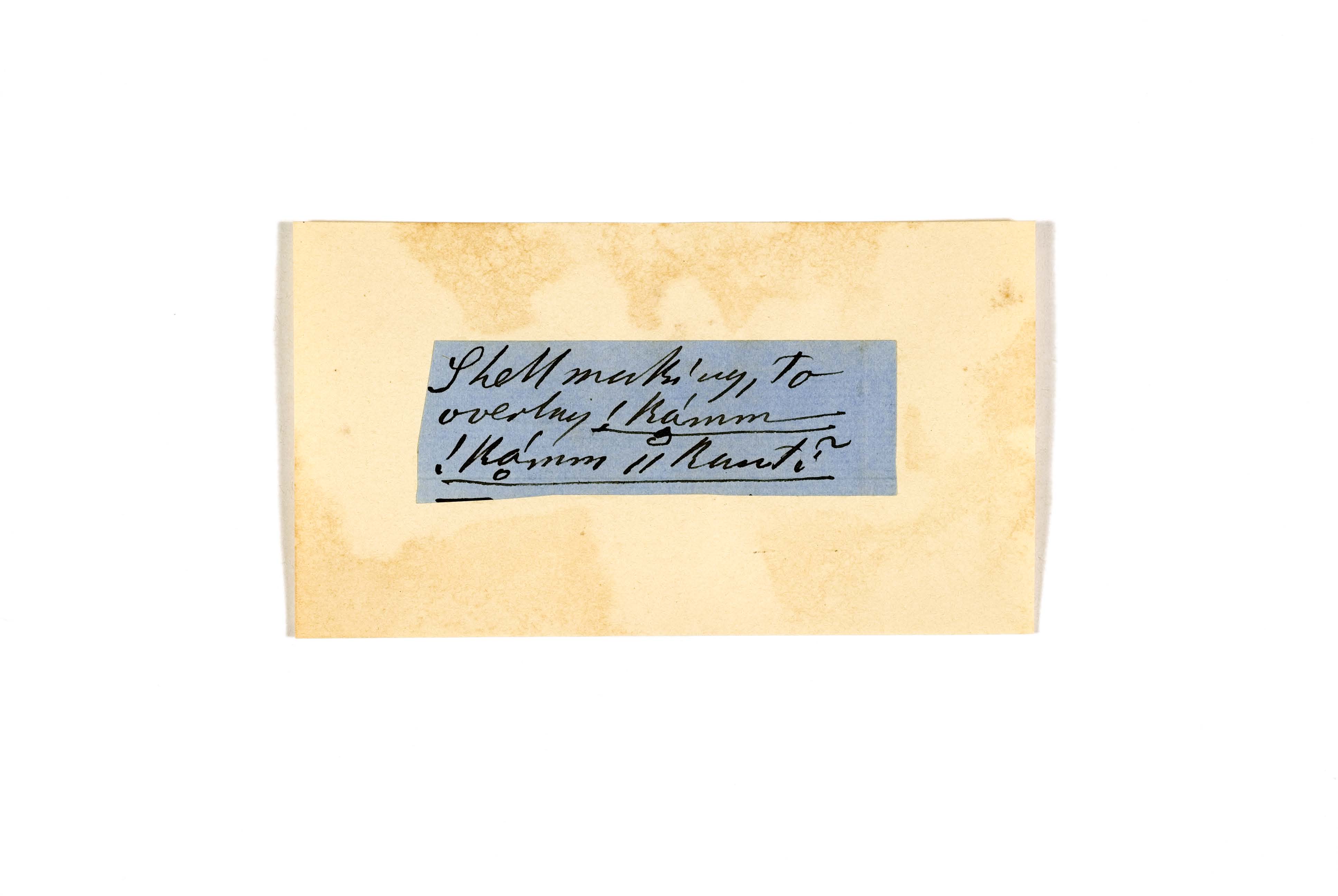 ink on blue paper glued on card