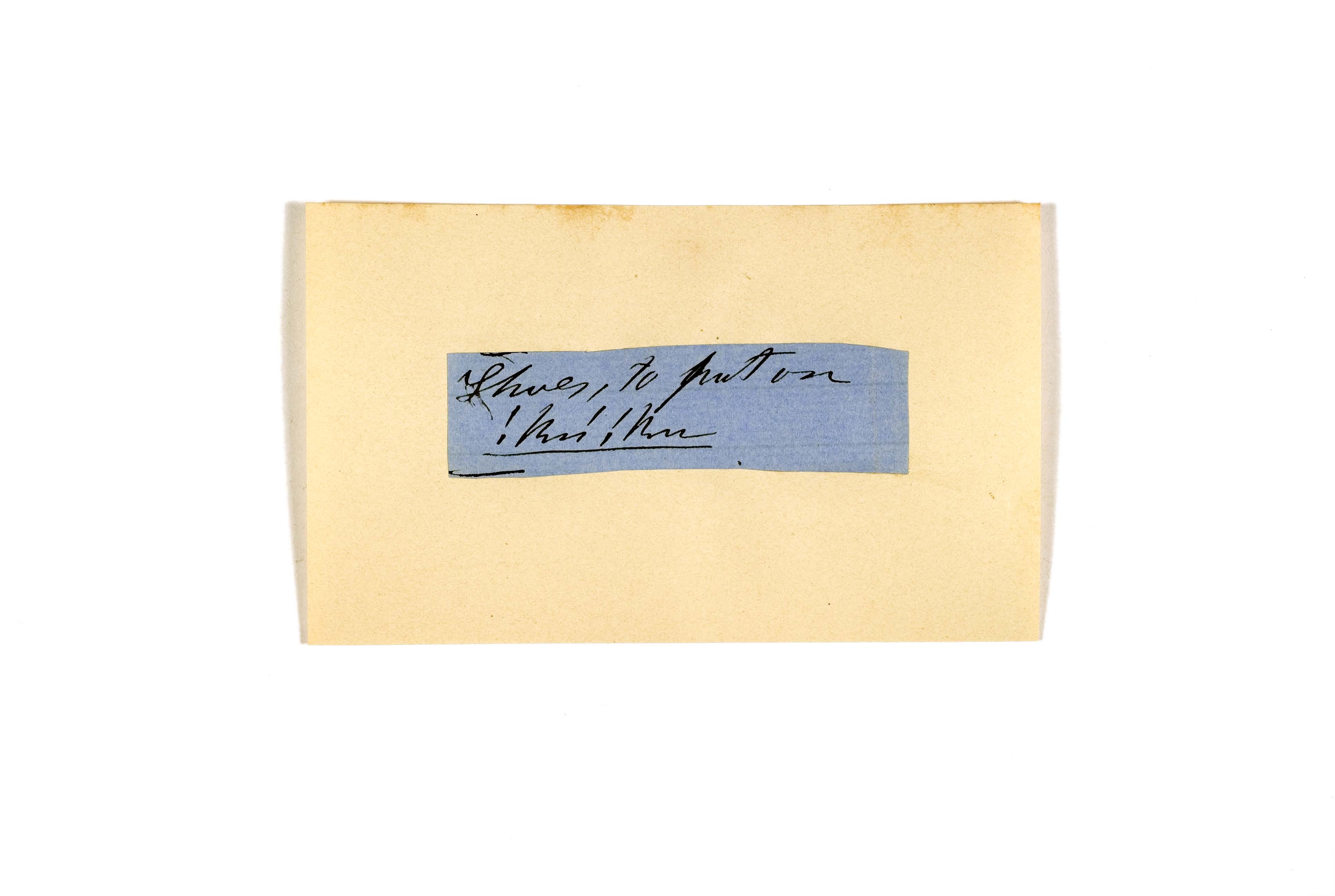 ink on blue paper glued on card