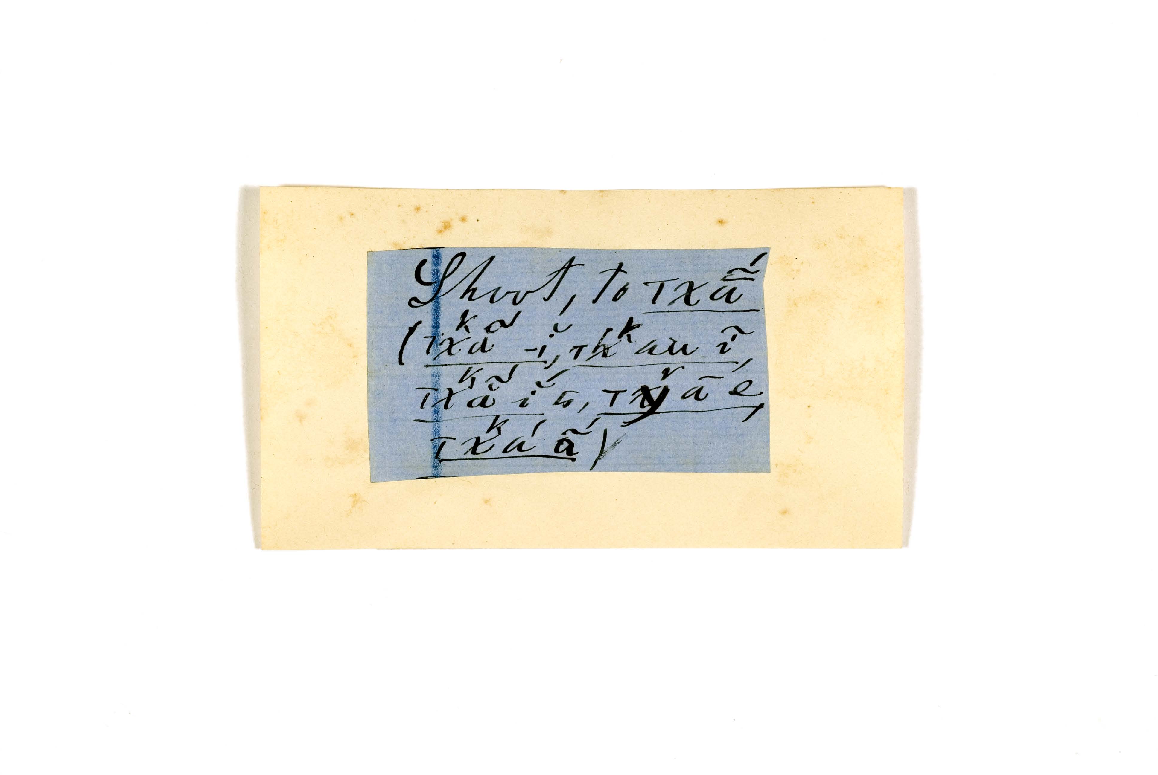 ink on blue paper glued on card