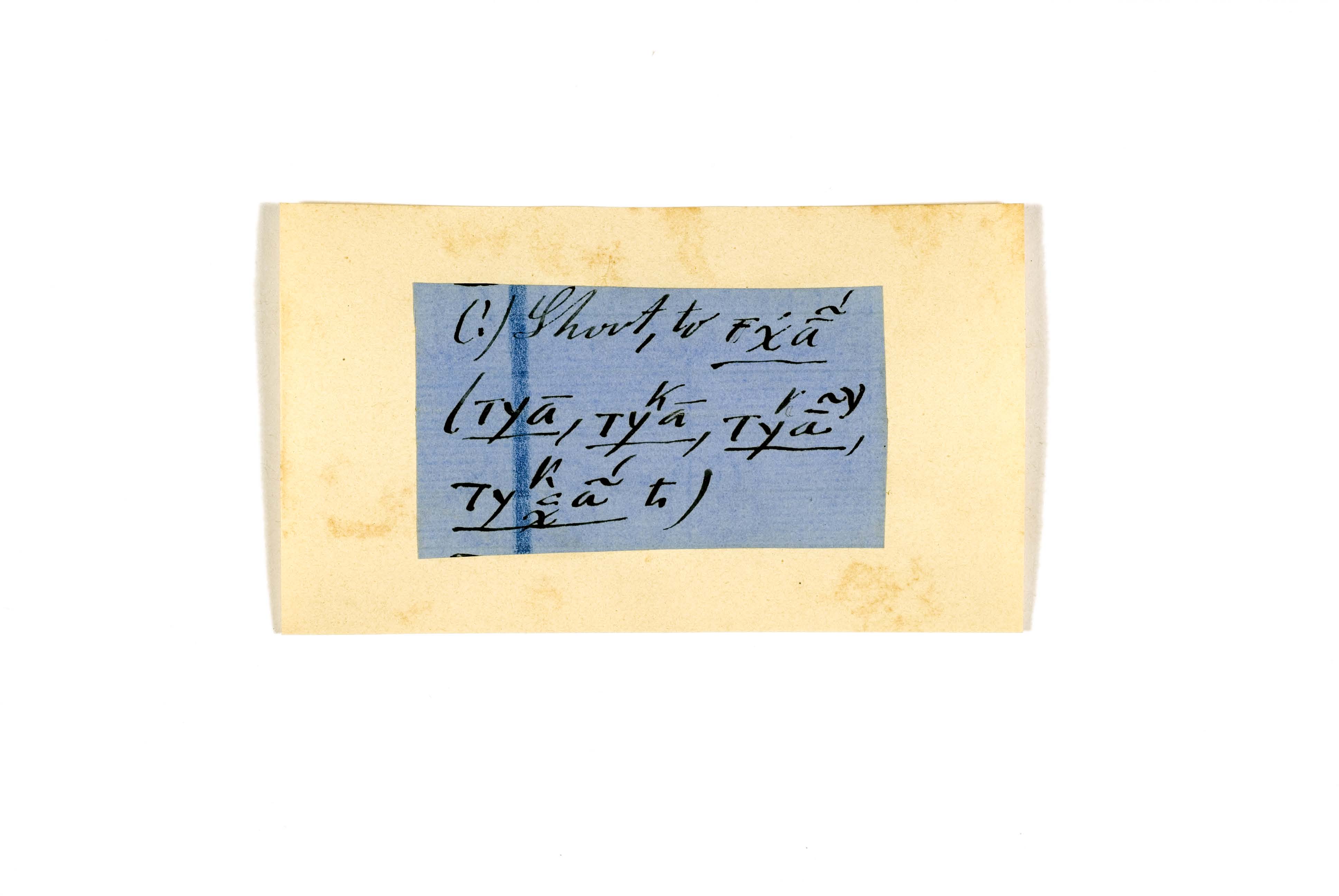 ink on blue paper glued on card