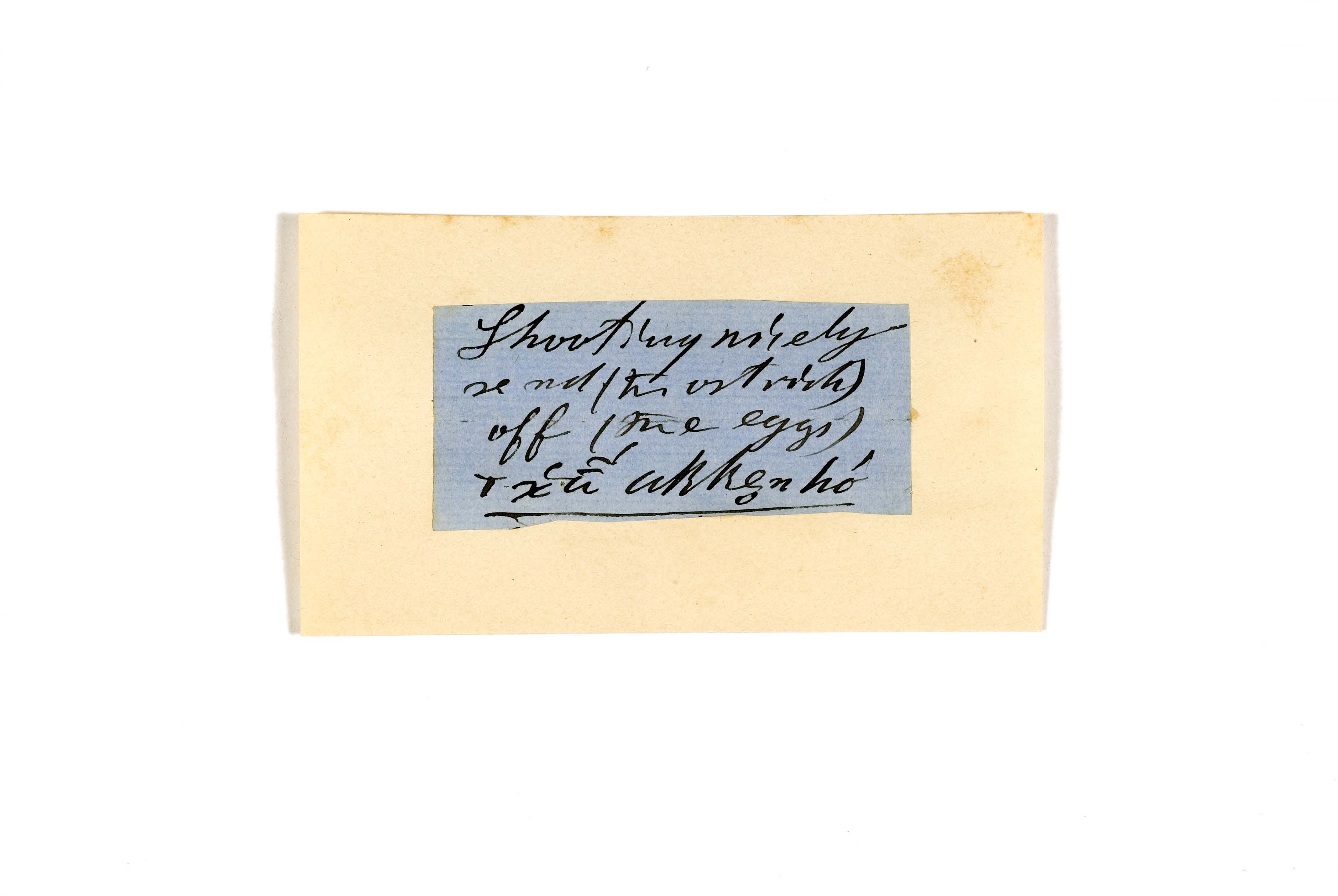 ink on blue paper glued on card
