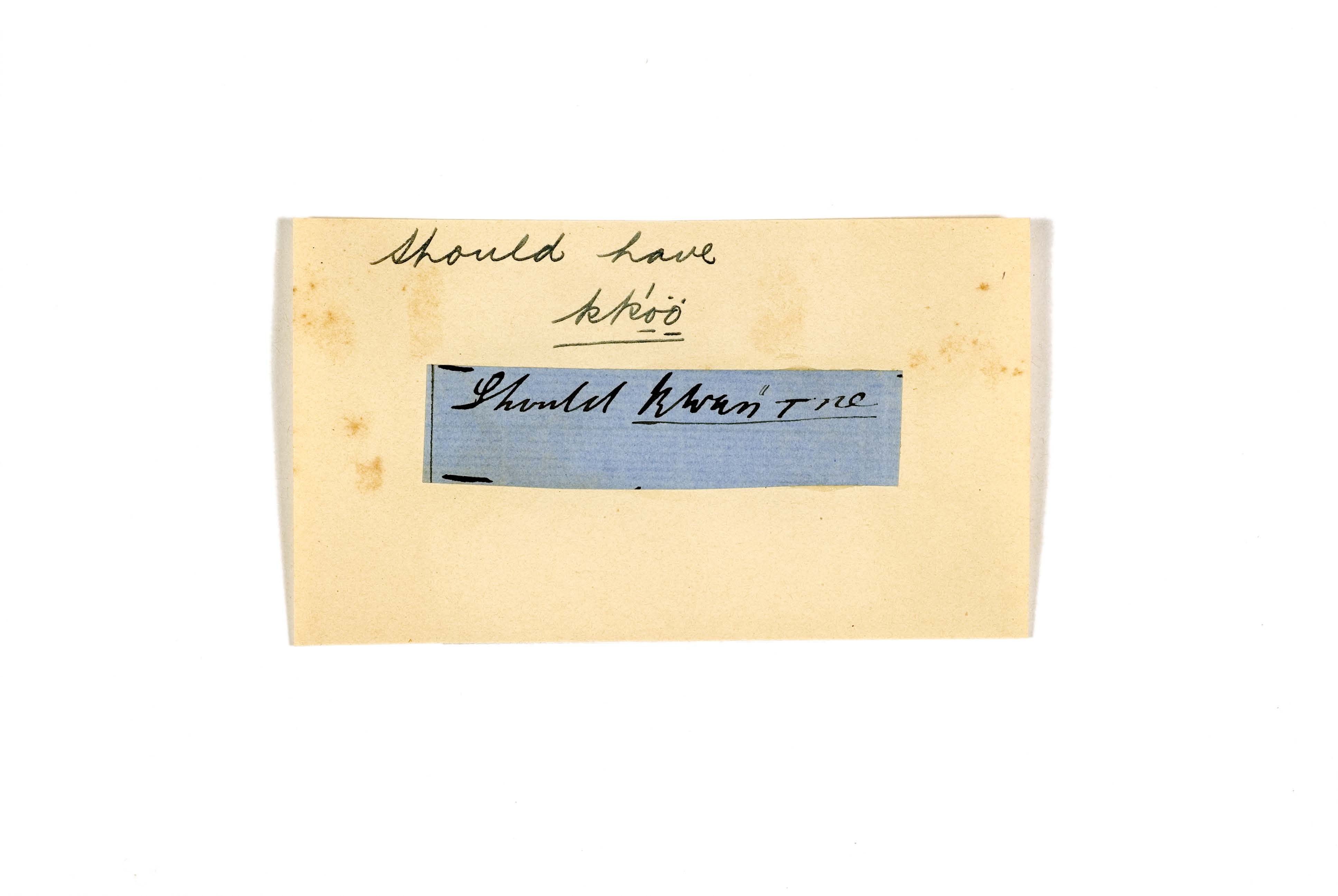 ink on blue paper glued on card