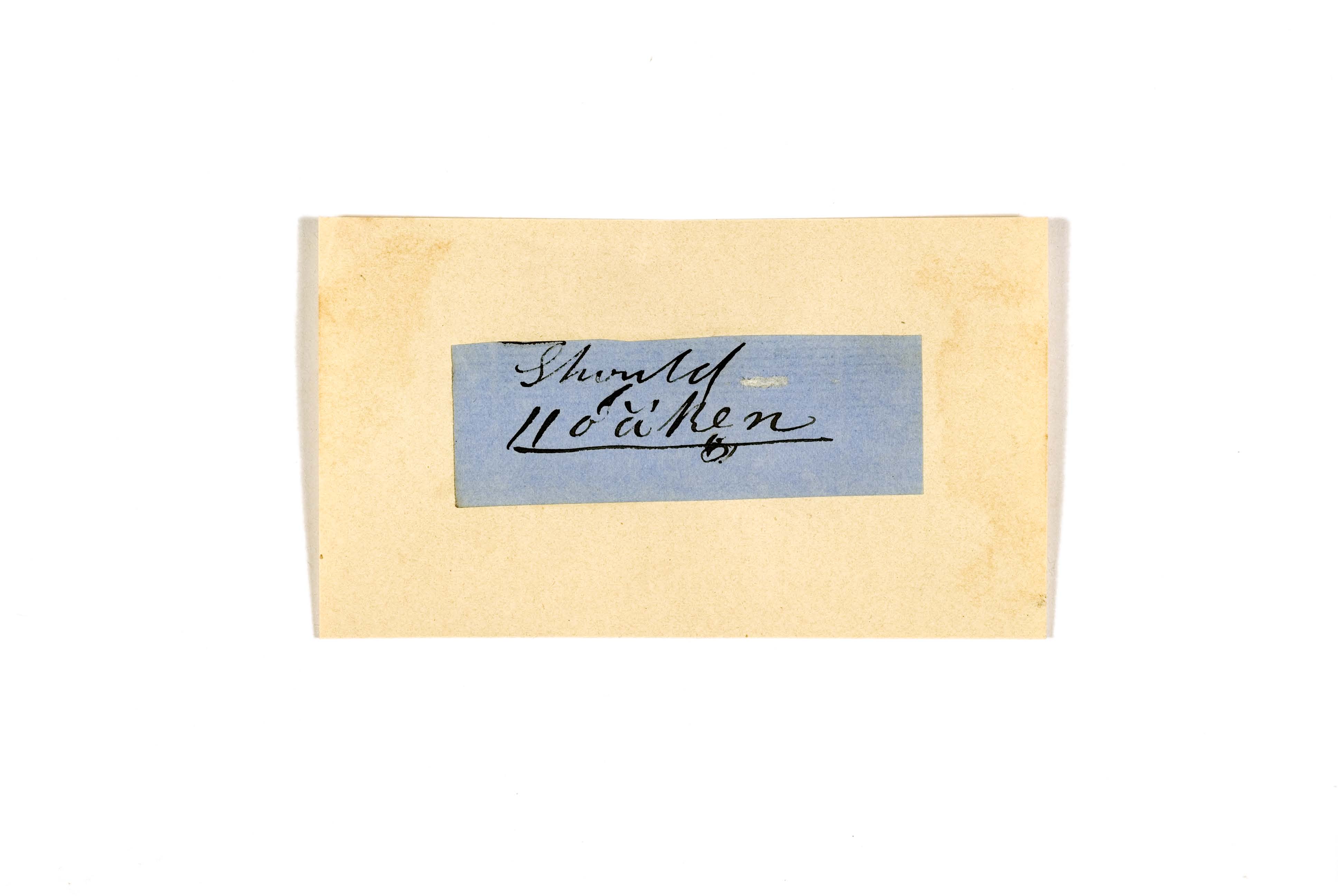 ink on blue paper glued on card