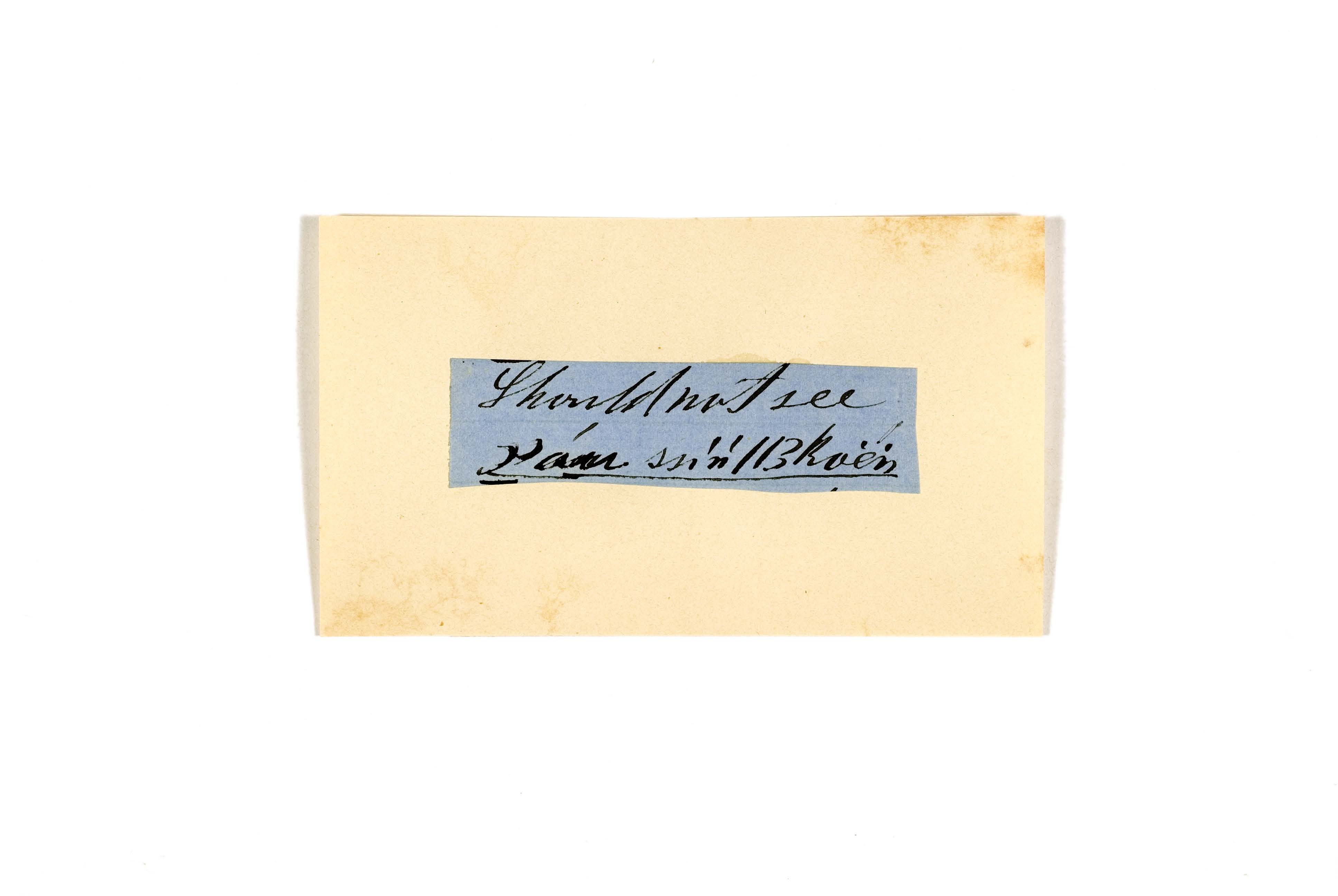 ink on blue paper glued on card